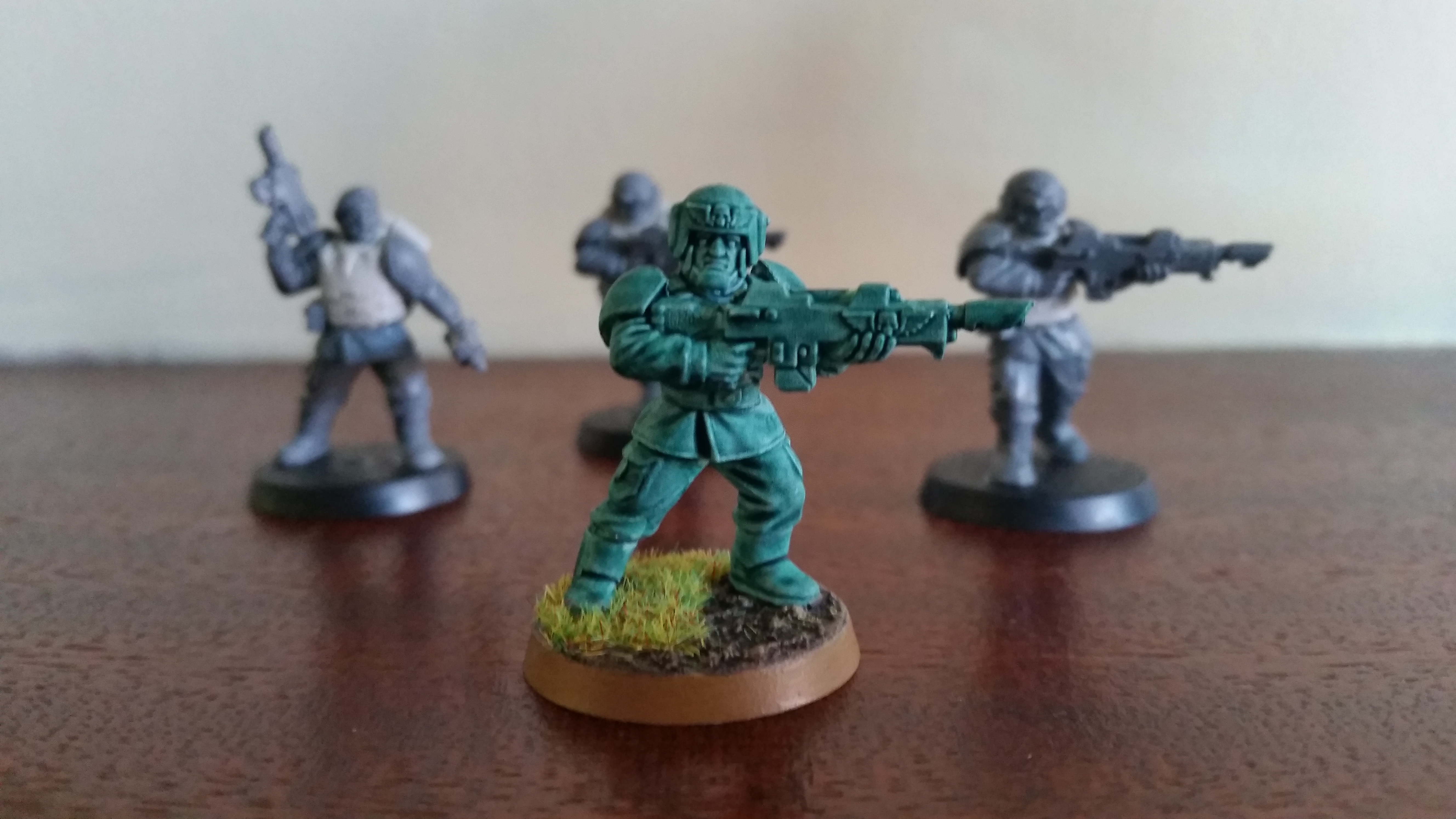 So I was looking for a quick and easy way to paint 50 guardsman, but also look different to the standard guard.