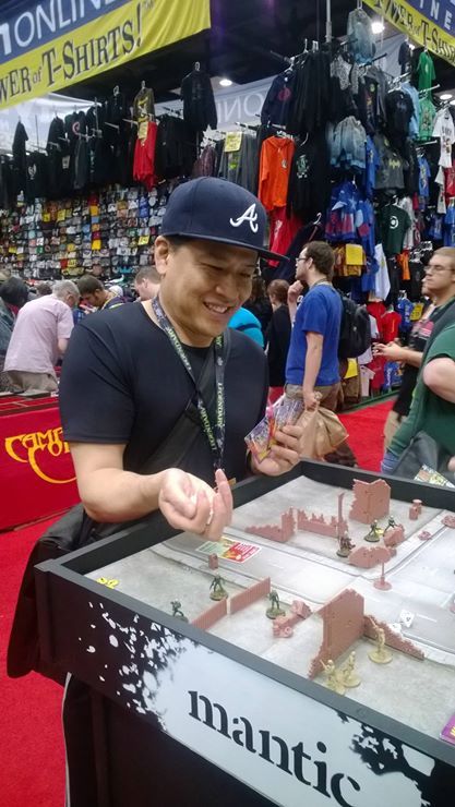 The Mantic booth was a simple 10x20 with a large Dreadball banner, two podiums with Deadzone and Mars Attack, a shelf of Deadzone (and terrain) and a shelf with Loka, Dreadball, and Kings of War, and Deadzone books. They also had a table with Dreadball demos and a large structure of Deadzone terrain with a few models in it. Don't feel bad about missing it. We walked past it like six times and only found it when Heath Foley took us there because he was doing sketches at their booth. Edit: It was on the other side of the Hirst Arts booth.