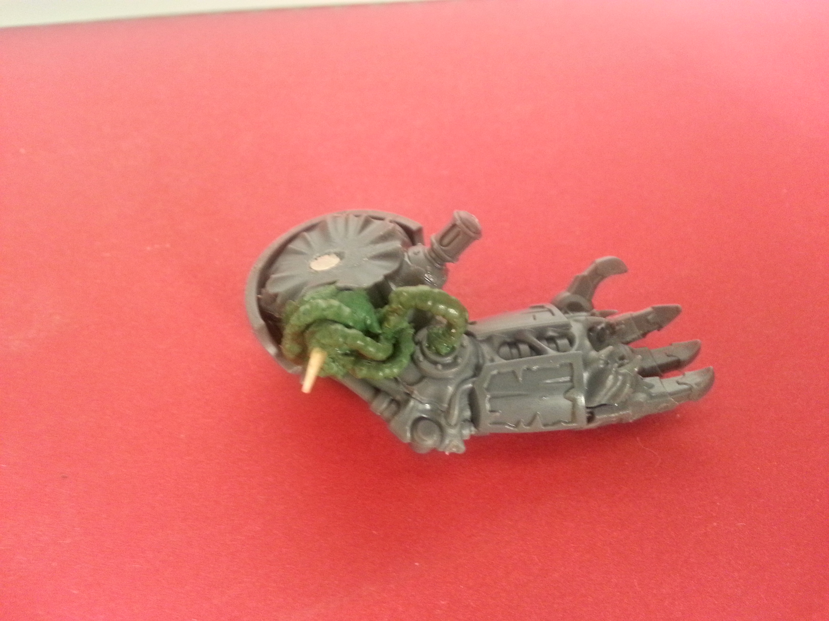 So getting fed up with some of the parts. I think I have it ready for paint. I even took the time to use some of the hoses to keep them so they rest on the model. I attacked the hoses to the arms but, not the body. After some brainstorming about what to do with some of the big blank spots that some hoses I did not use for this magnetization project. Some toothpicks and green stuff and we are good to go.