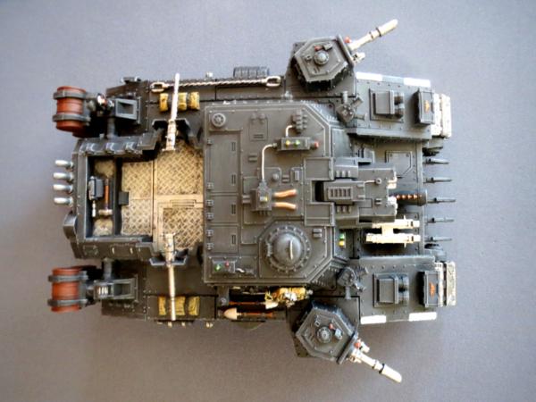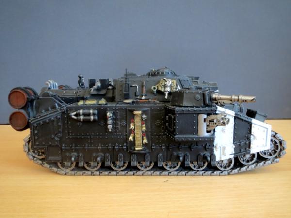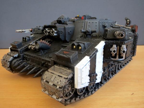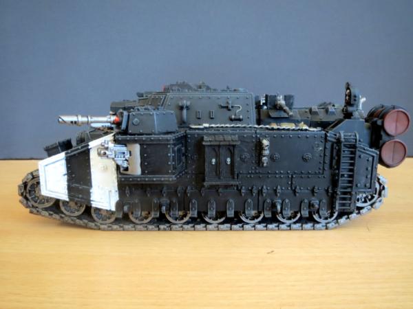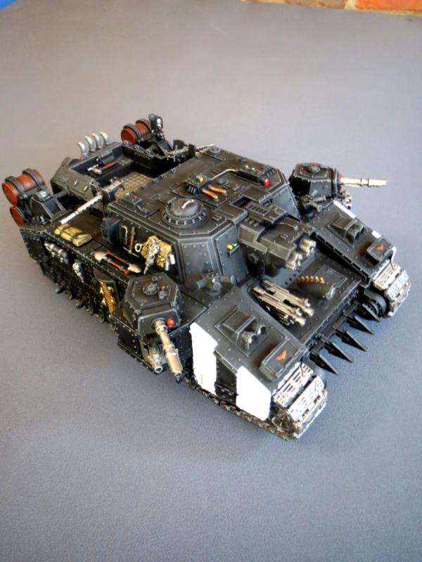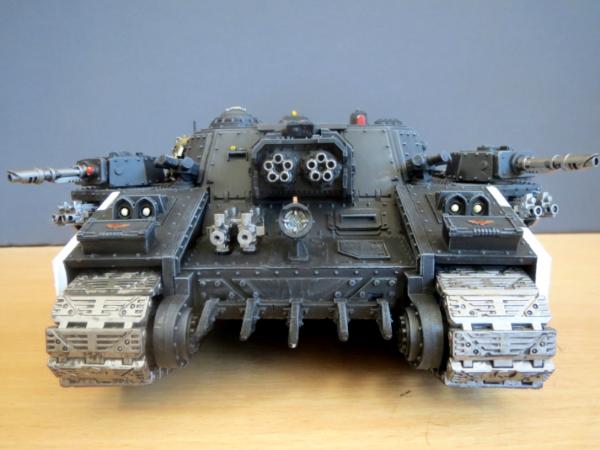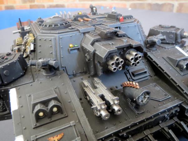 the_Armyman wrote:The silver bits are a bit stark. A dark brown or black wash would knock down the metallic sheen a few notches. Also, I agree that the muzzles on the lascannons, as well as the heavy bolter casings, should probably be painted black.