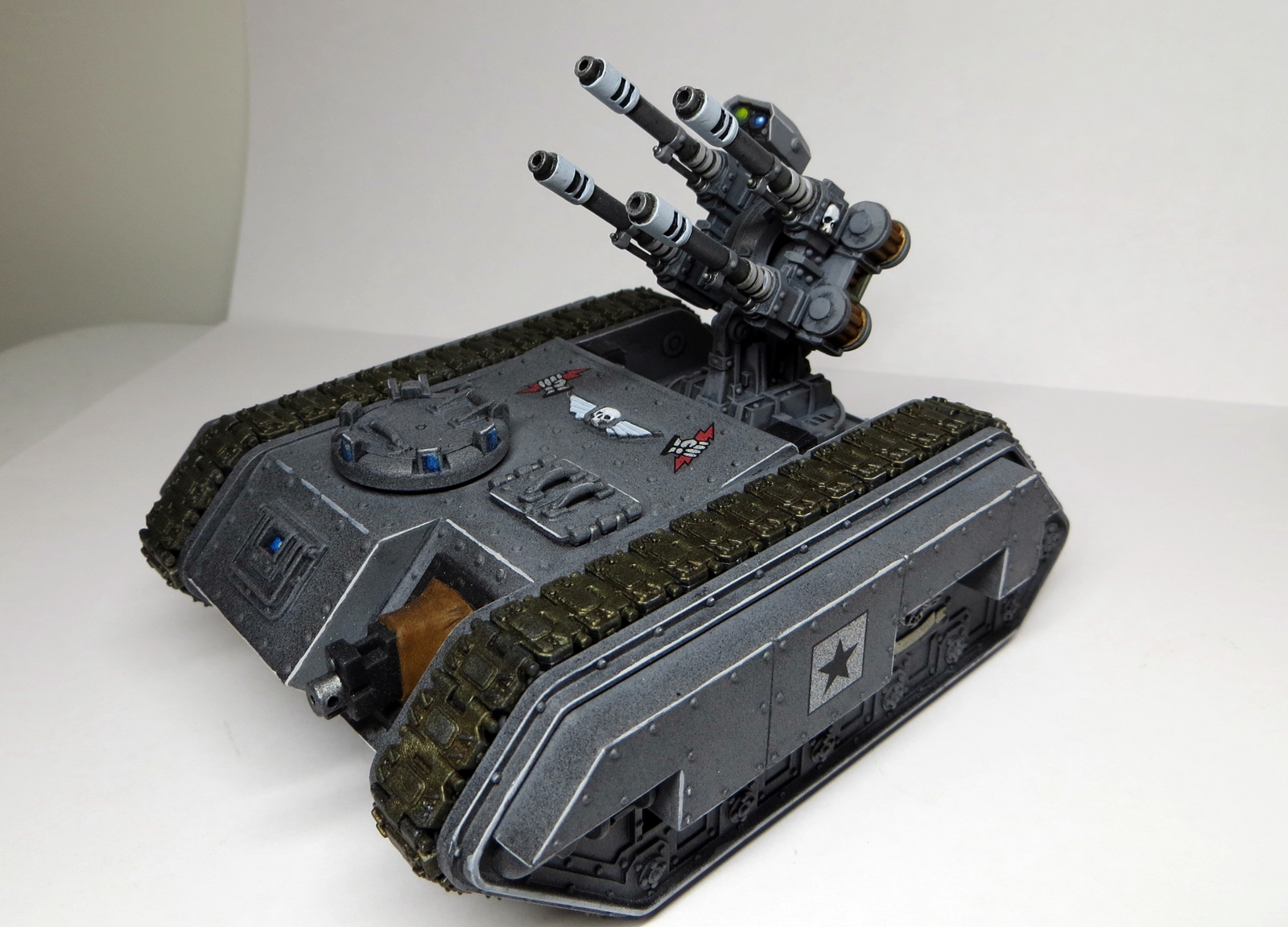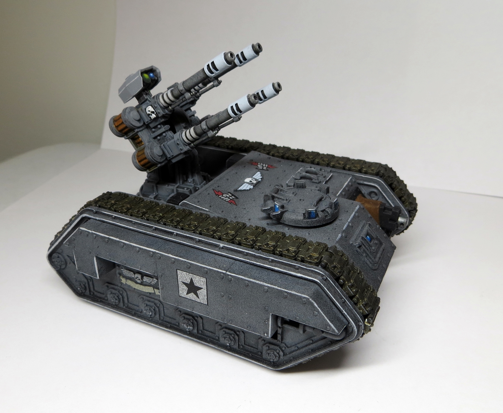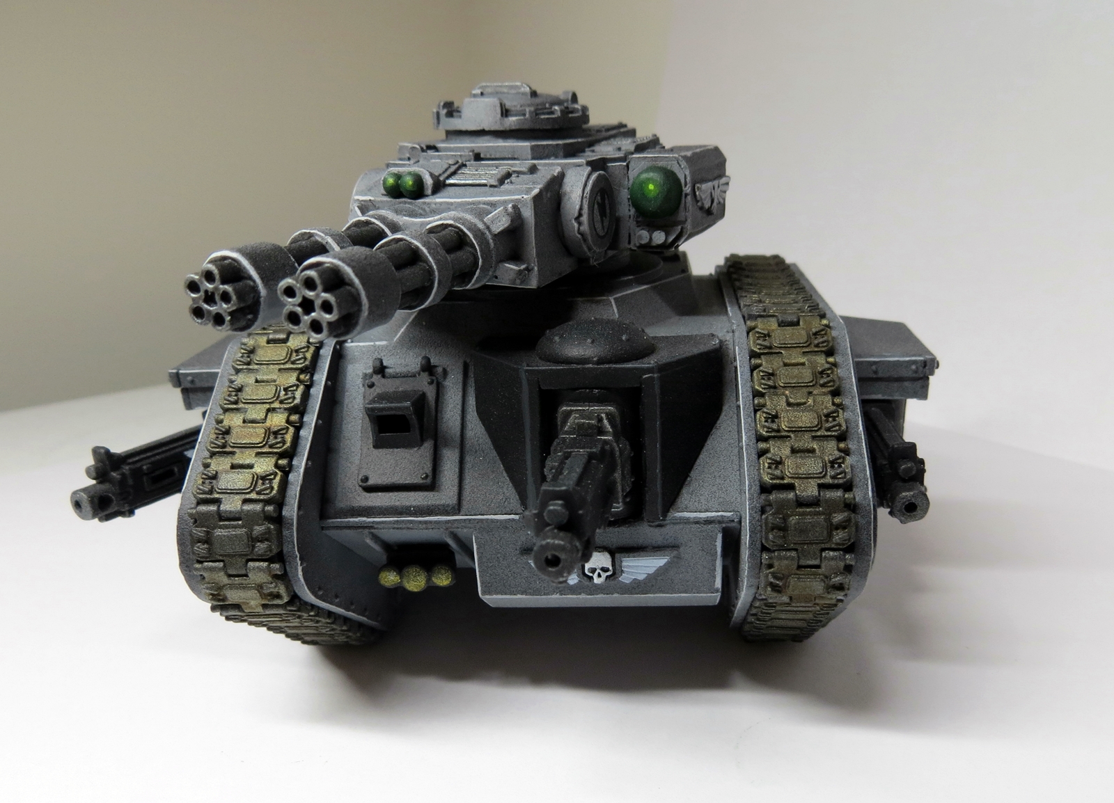 Yeah, the body for the Leman Russ was actually one of my first from back around 04' or so (Wow, just realized that was ten years!) which I stripped down and redid to get it on par with the rest of the army. The turret was purchased on ebay from a polish dude. It's a resin cast which came with gummy (improperly hardened) guns and the turret body had a ton of holes in it. I glued some GW hatches, power units, and skulls onto it to make it look more 40kish.