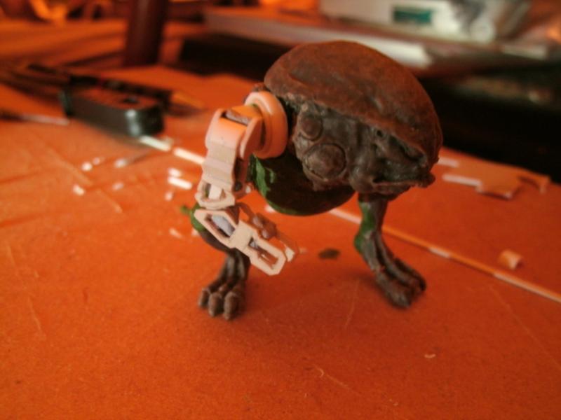 So I thought the legs were starting to run away with me (sorry, sorry  ) and so I decided to go back to some smaller legs from a previous build. I've also been working on a helmet but the more I tinkered with it the less it resembled what I was trying to achieve so I hacked off the snout which was the only bit I really liked and put that on to a much older helmet, again, from a previous build.