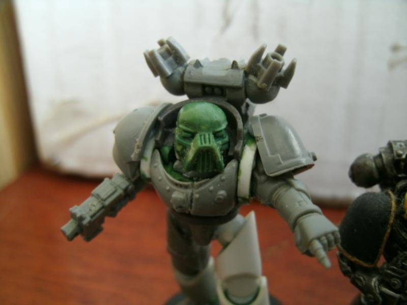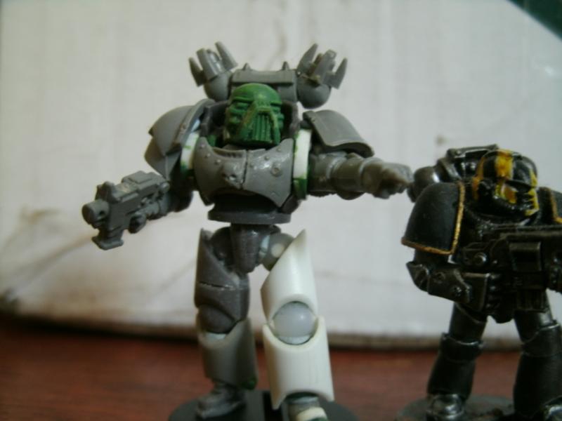 Salvaged the helmet from my old huge True Scale Marine which I think works pretty well although when I make a new version it'll be ever so slightly smaller and more refined but you get the impression.