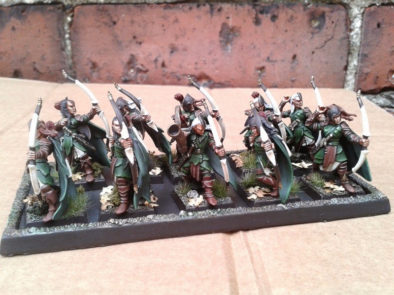 I am continuing to work on my small Wood Elf force and recently finished my 2nd unit of Glade Guard. I hope they past muster!
