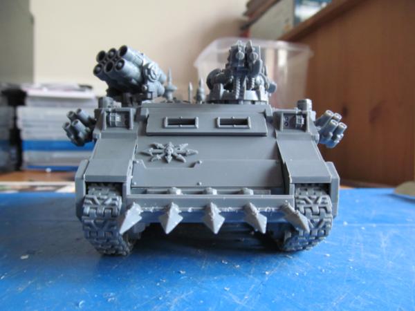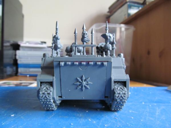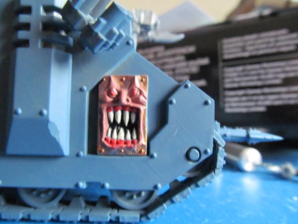 This Rhino has two daemons that being called "Guardian Daemons" so they'll be effecting the areas they are located To keep my Warband's overall theme of Metal / flesh theme