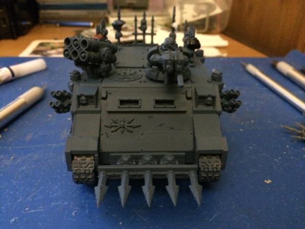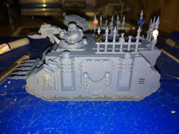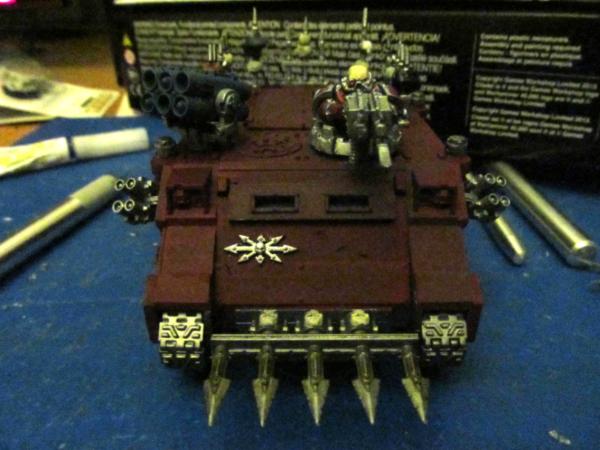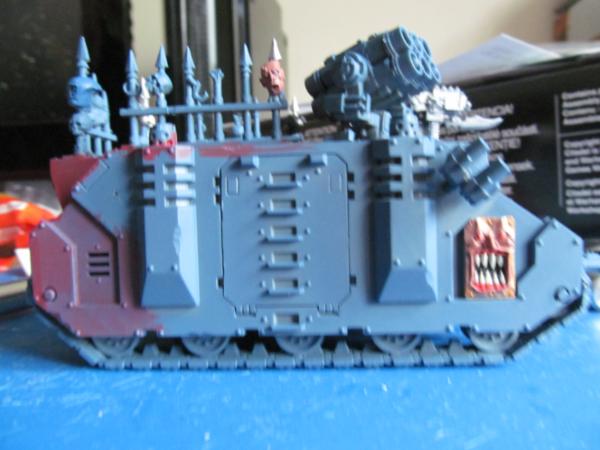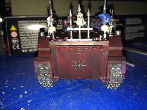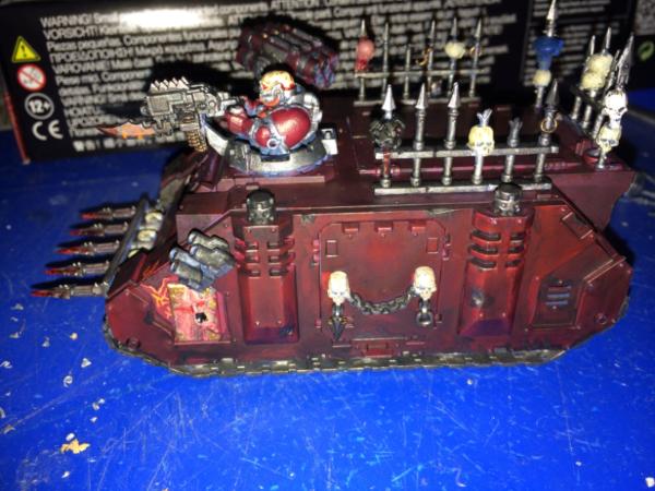 Well weathered, very fitting of chaos. If you can managethis with as rhino, land raider could be great, lots hull to work on.