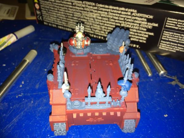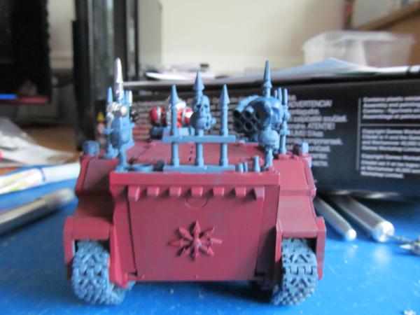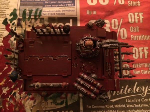 So today finally finished the first layer of Khorne red that needed applying onto the main Rhino body itself. Also done 95% of the metal that needed painting on there just the Havoc launcher is left to paint before giving the rhino another layer of Khorne red to bring the depth out and red for its entire wash of Black.