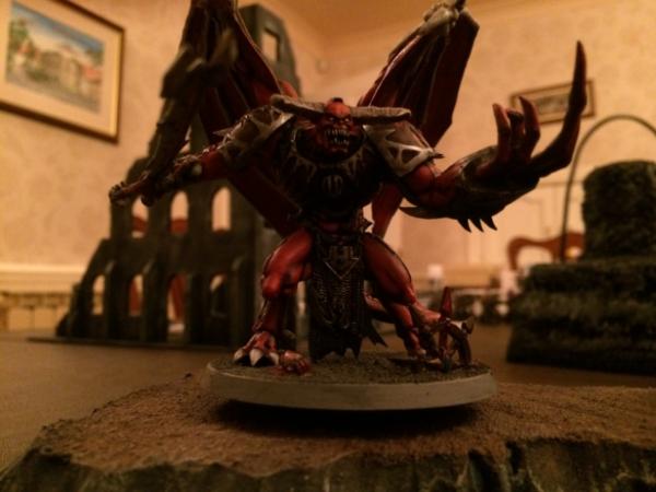 After landing, they turn to suddenly see the Chaos Daemon Prince, looming over them as he awaits for their fear to show.