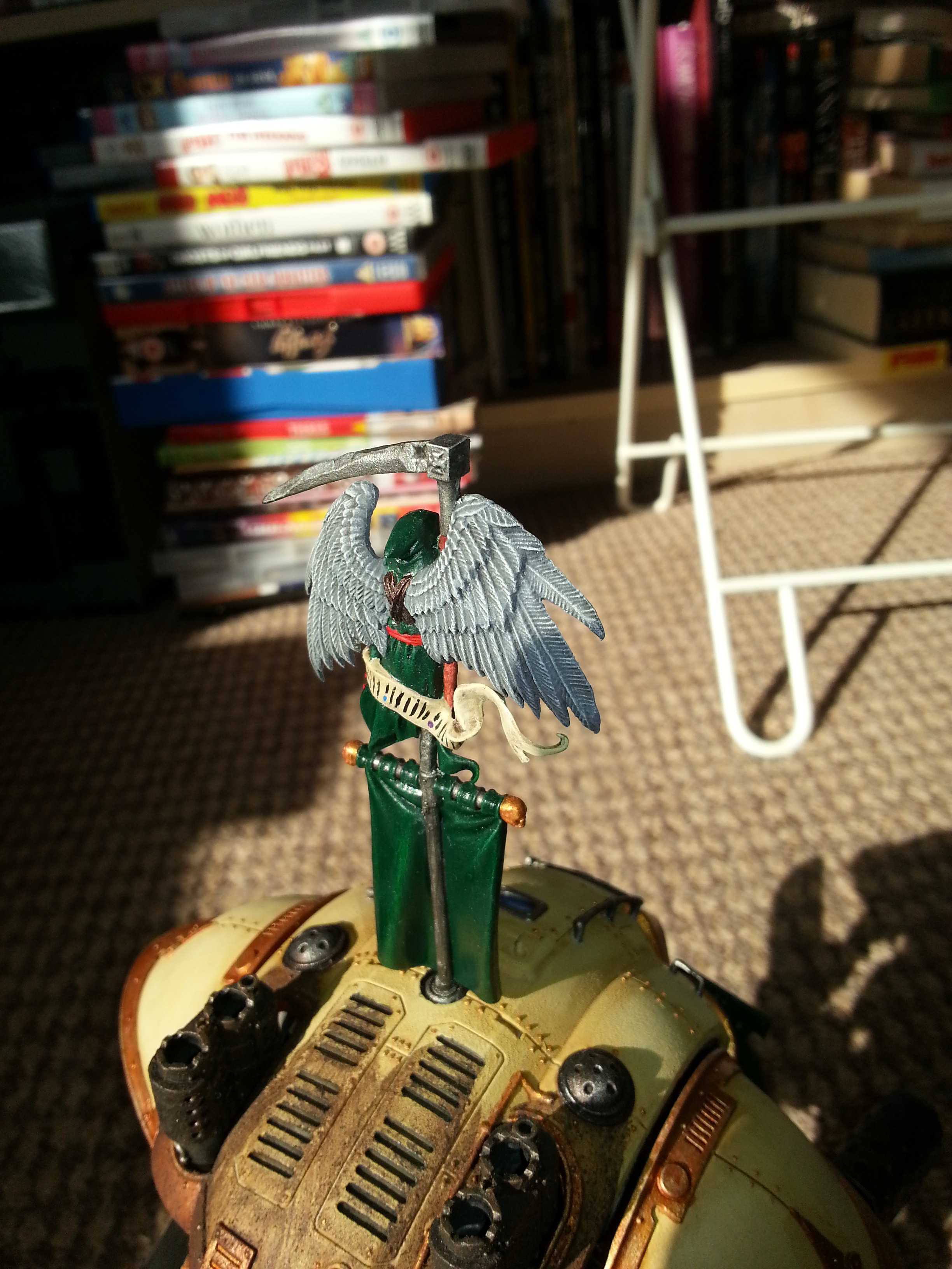 Now, the only thing I can say (again, it's hard to tell because of the pics), your paint may be going on just a tad thick. The Knight is looking nice (dig the shoulder areas and the metals that are showing), just wondering if the base is complete. Also, the use of the