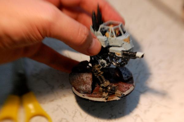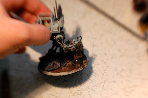 So here are the picks of my Sentinel, where the problem is more pronounced because he's actually on a base, but this gives you a sense of the color I'm going for. Should I just turn this soil paint into a base and go over it again? For the future should I just water TC down and mix it with some of this paint?