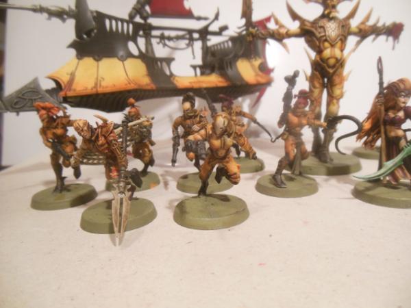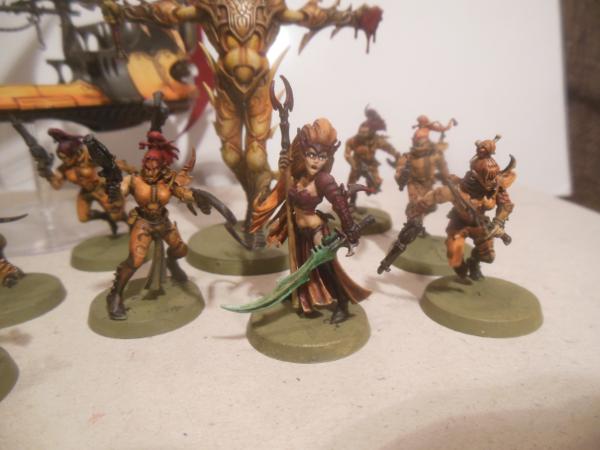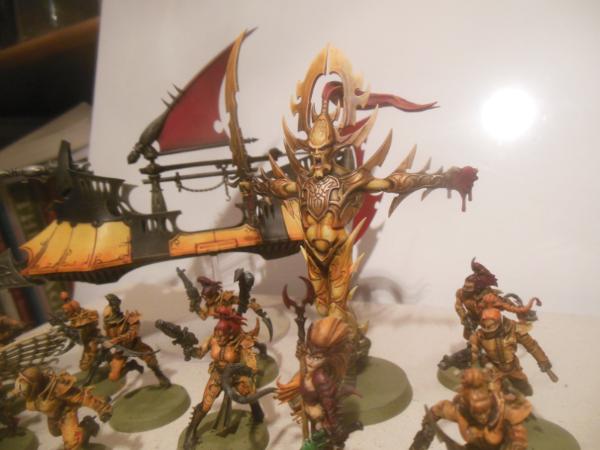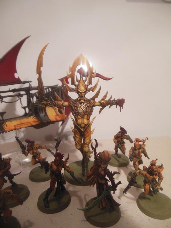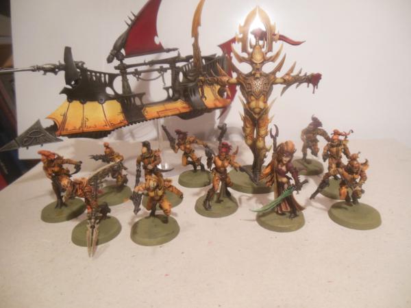 So I came up with a kind of Cult of Fire wytch gang/ Fire Dancers that hang around an Avatar taken from the Dark Elves cauldron of blood Khain.