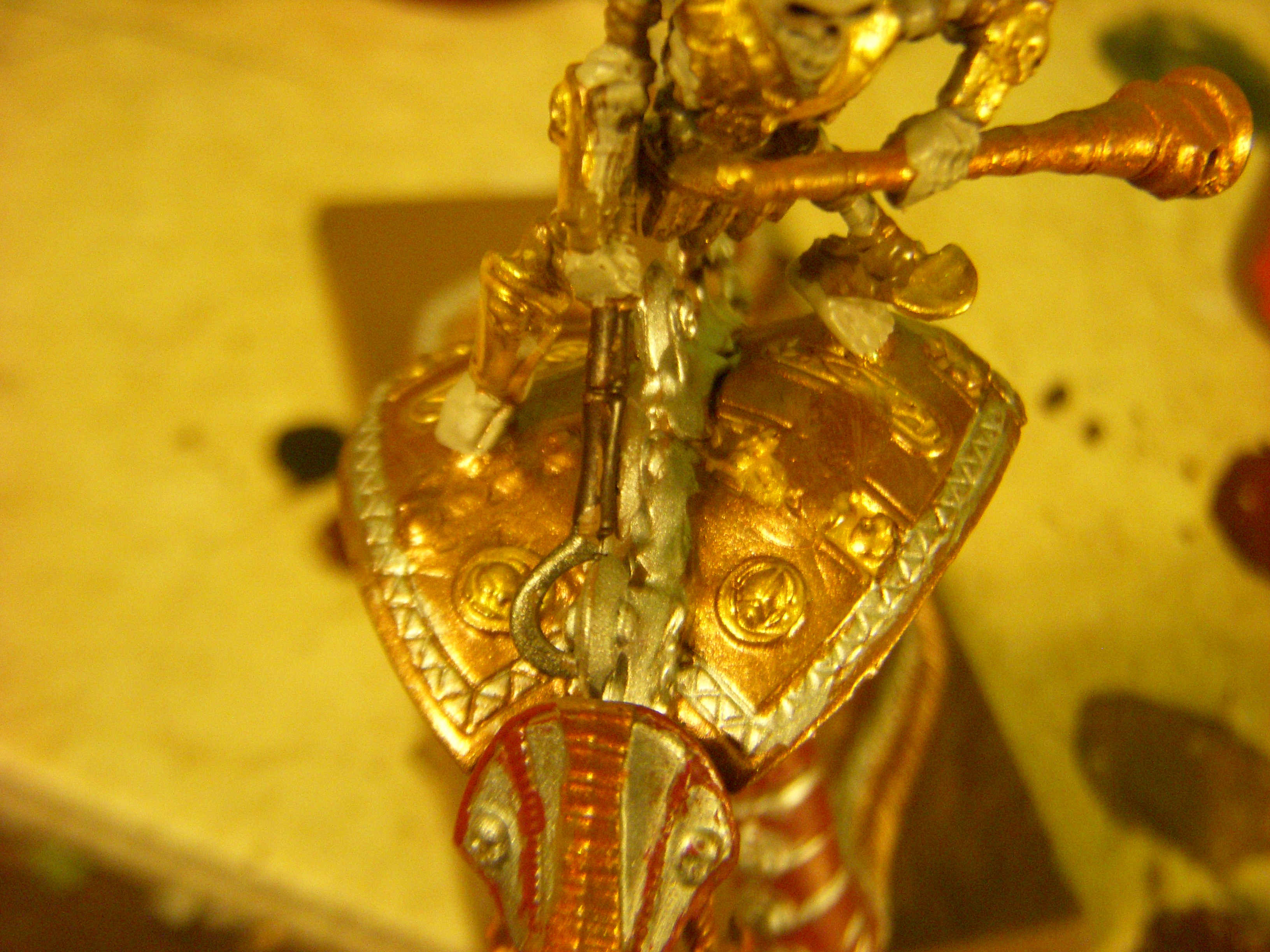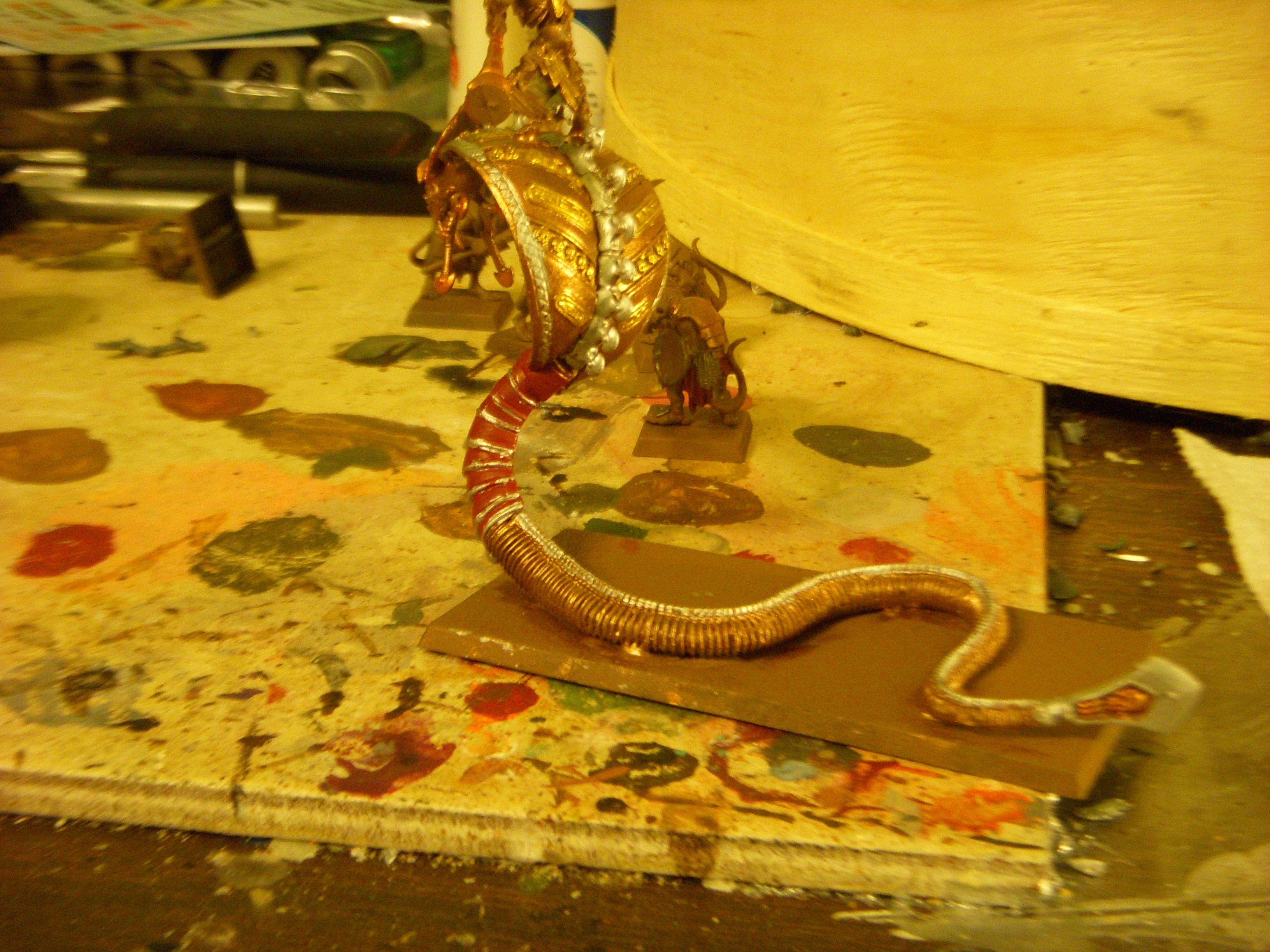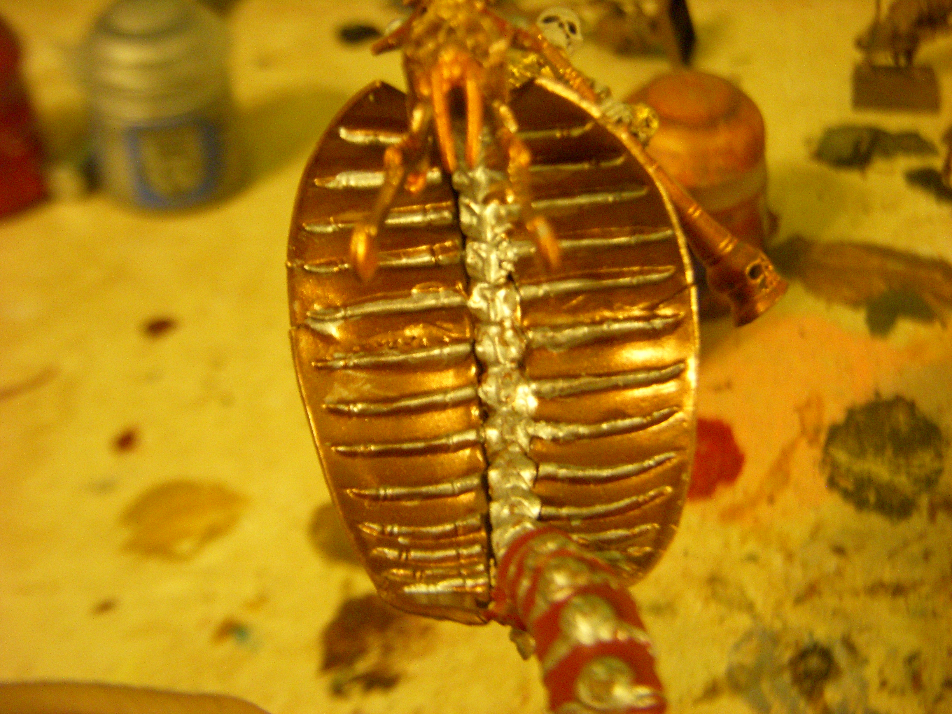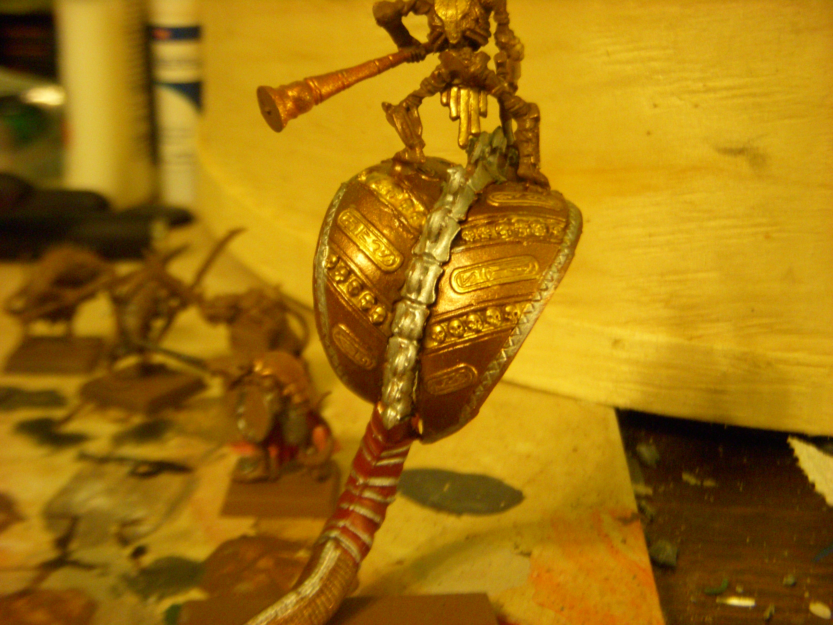 The sheild after drying, other side still needs to be shaded. It will be glued to the knights back after the entire serpent/rider is painted