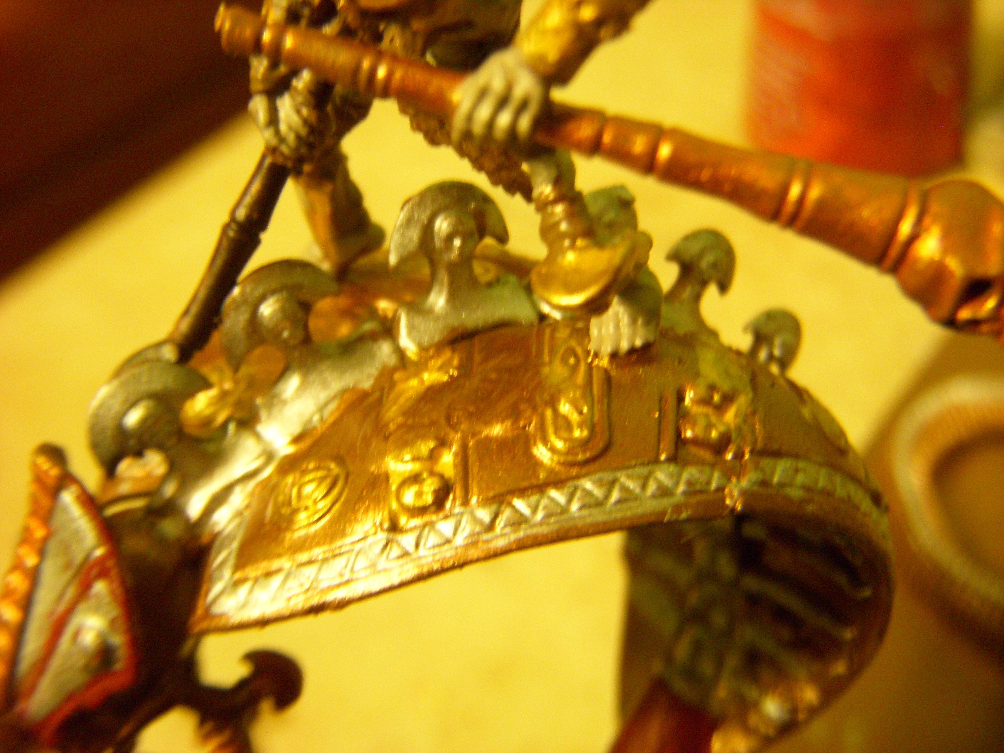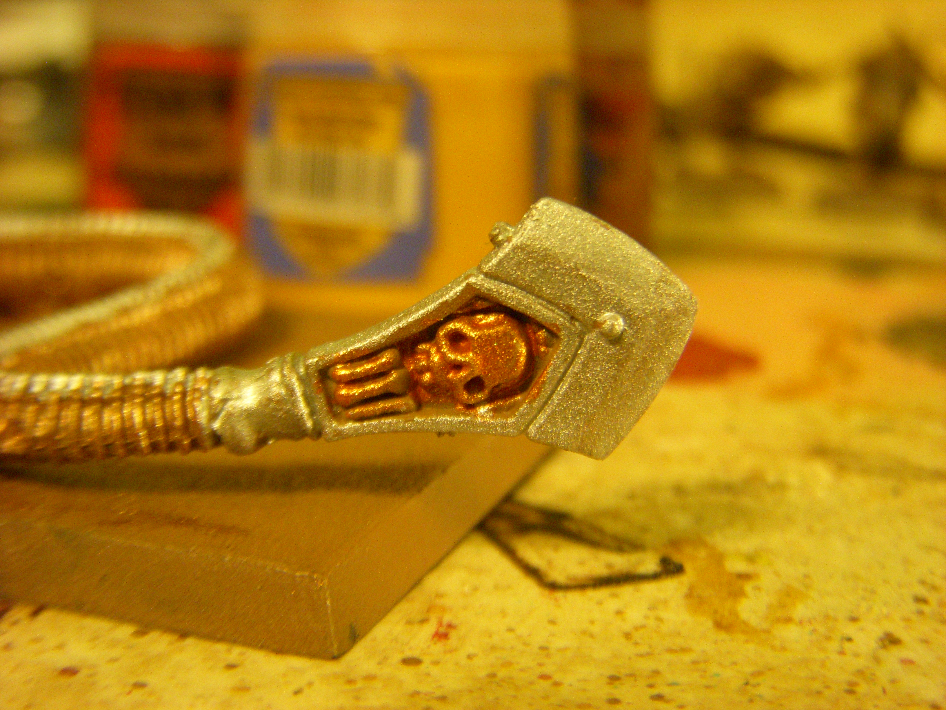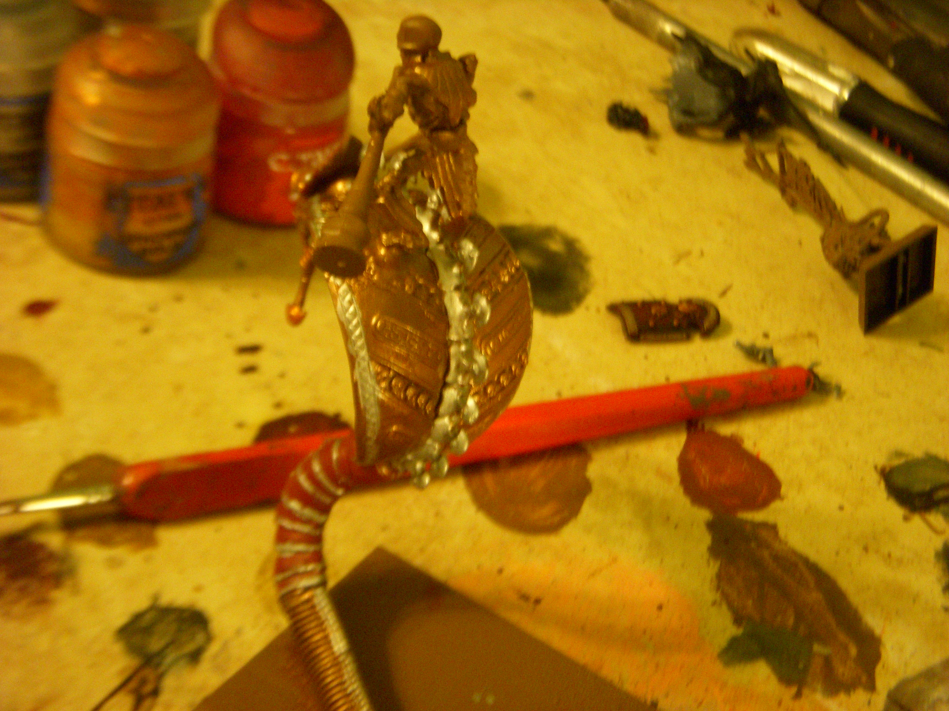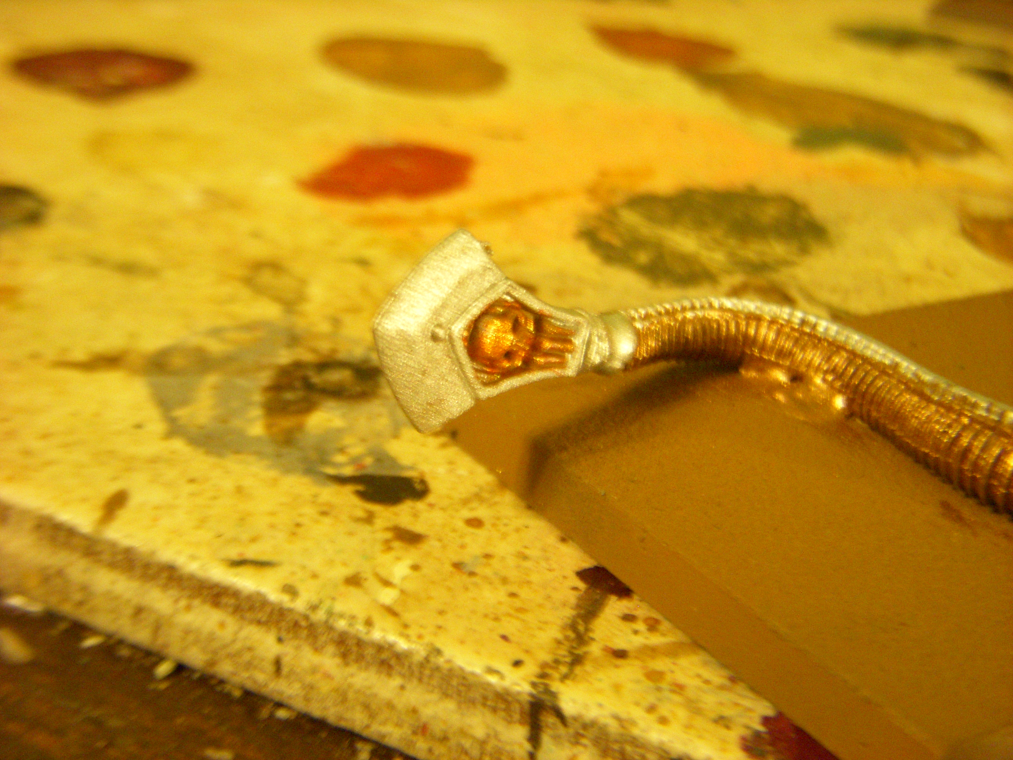 The sheild after drying, other side still needs to be shaded. It will be glued to the knights back after the entire serpent/rider is painted