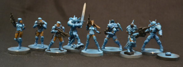 So to start with I have a small Aleph force, though they'll probably be on the back burner seeing as I'm currently playing through the O:I missions making PanO the priority. I started towards the official scheme, but I'm not 100% sure I'm heading in the right direction, or if I want to continue with it at all. Still metal minis are easy to strip so I'll finish a couple and see how they look before making a decision, the official scheme is part of what drew me to them so it would be a shame not to at least try it.