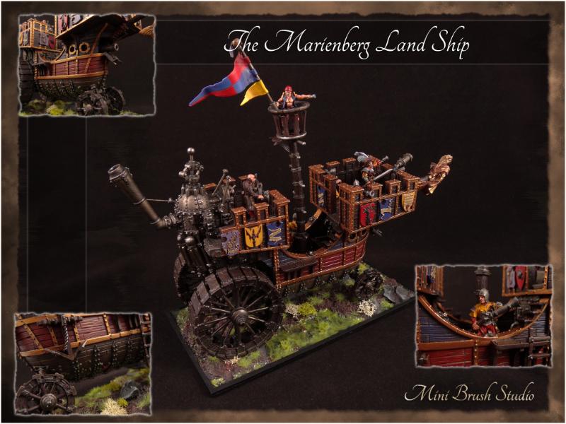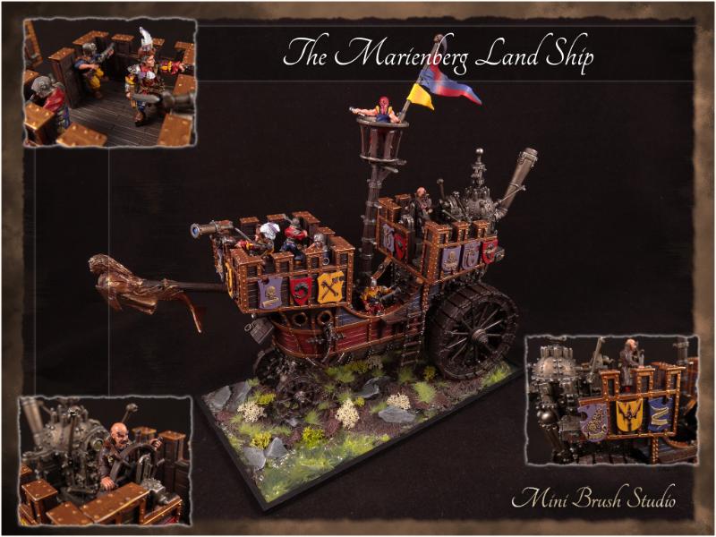Nice work. I wonder when I see such a well painted model though why you wouldn't put some writing on the scrollwork of the land ship. It looks a little incomplete in that regard but I really like it.