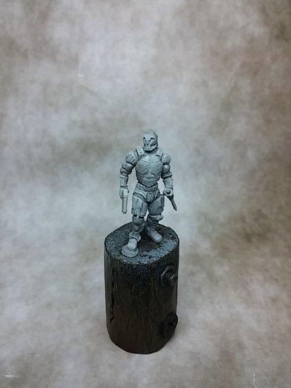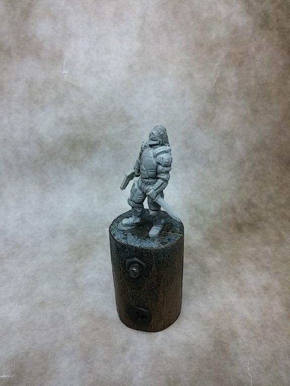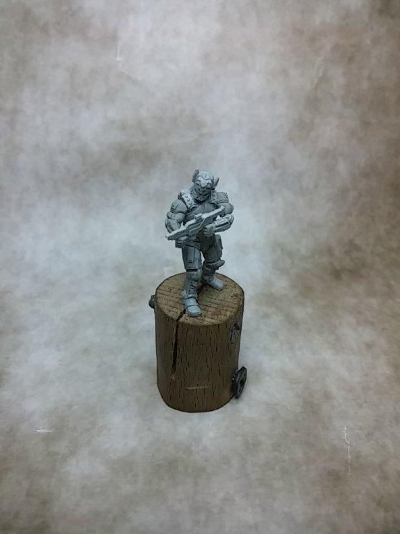 Reference scale, the Remnant unit's are mainly human so will be in the 28-30mm range in height, the bigger guys like the Haraki and SCR troopers are closer to 32mm for the SCR and 33-34mm for the Haraki but thats due specifically because of their anatomy,They are from low grav worlds so tower over humans. Overall the scale is 28mm, no 35-40mm stuff here    Here is a different pic of a Remnant former security officer, this one with advanced shotgun. The Remnants have usually been marooned on these lost colonies for sum time hence the somewhat ragged look with the torn poncho this futuristic policeman is wearing, their group will also consist of former mining employees and even shadier elements.