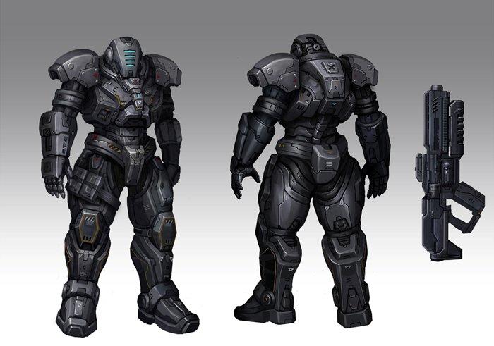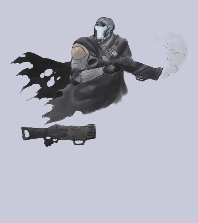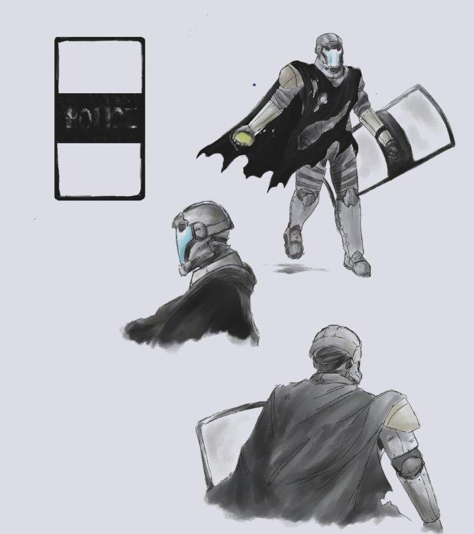 Here is a little more art for two of the factions that will be in the Abandoned Frontier universe. One is of a former miner on a doomed colony world carrying a massive laser mining drill for the Remnants faction ( just like the security police above). The other is very early B/W art for our totally alien race known as the Xrxn. This one in particular being a Praetorian, their basic assault trooper. We hope to have 3D renders soon of our SCR troopers pictured above that once completed we hope to send off for printing. Again if your interested we can currently be found on  FB at Abandoned Frontier. Website is soon to follow