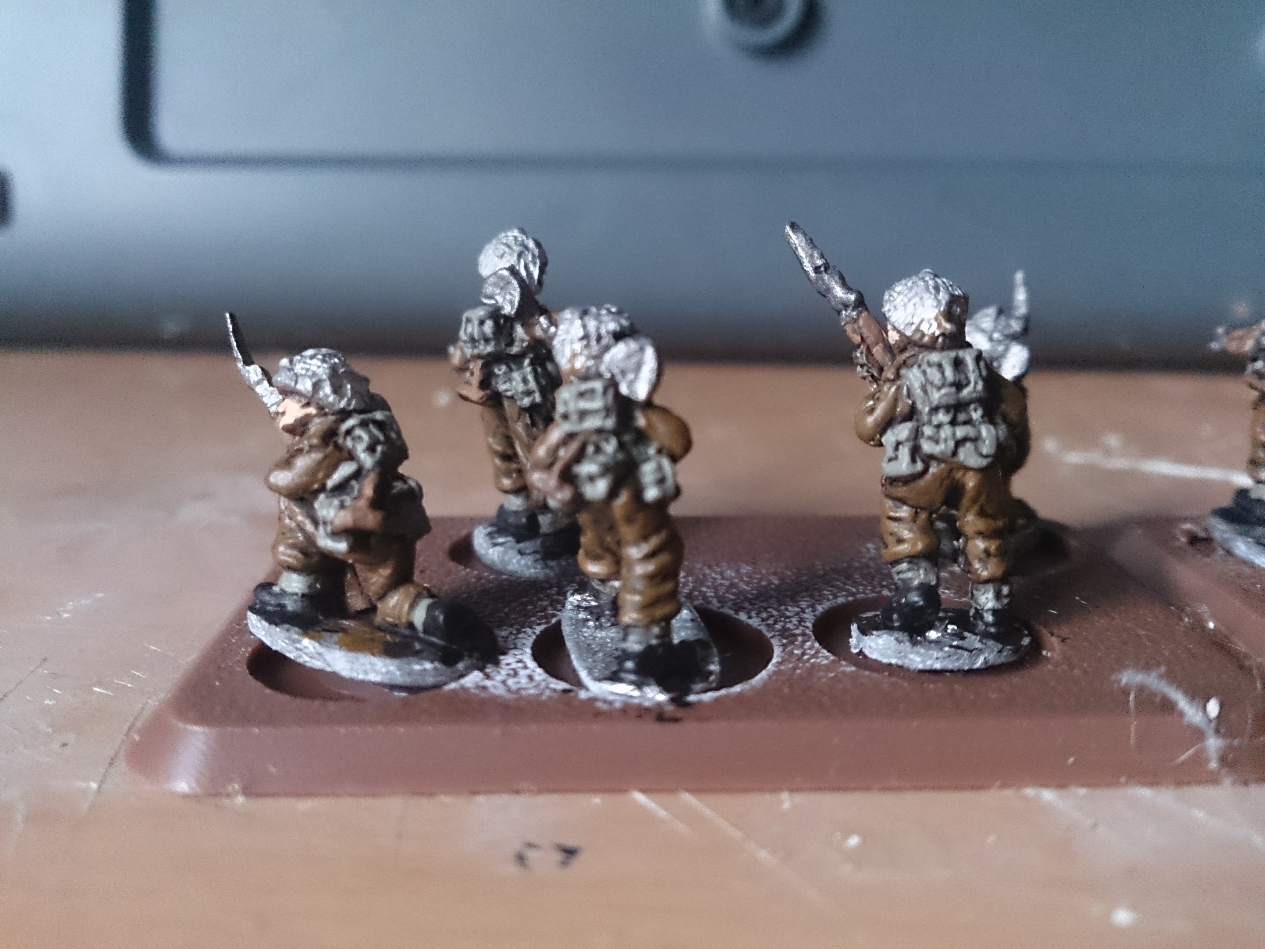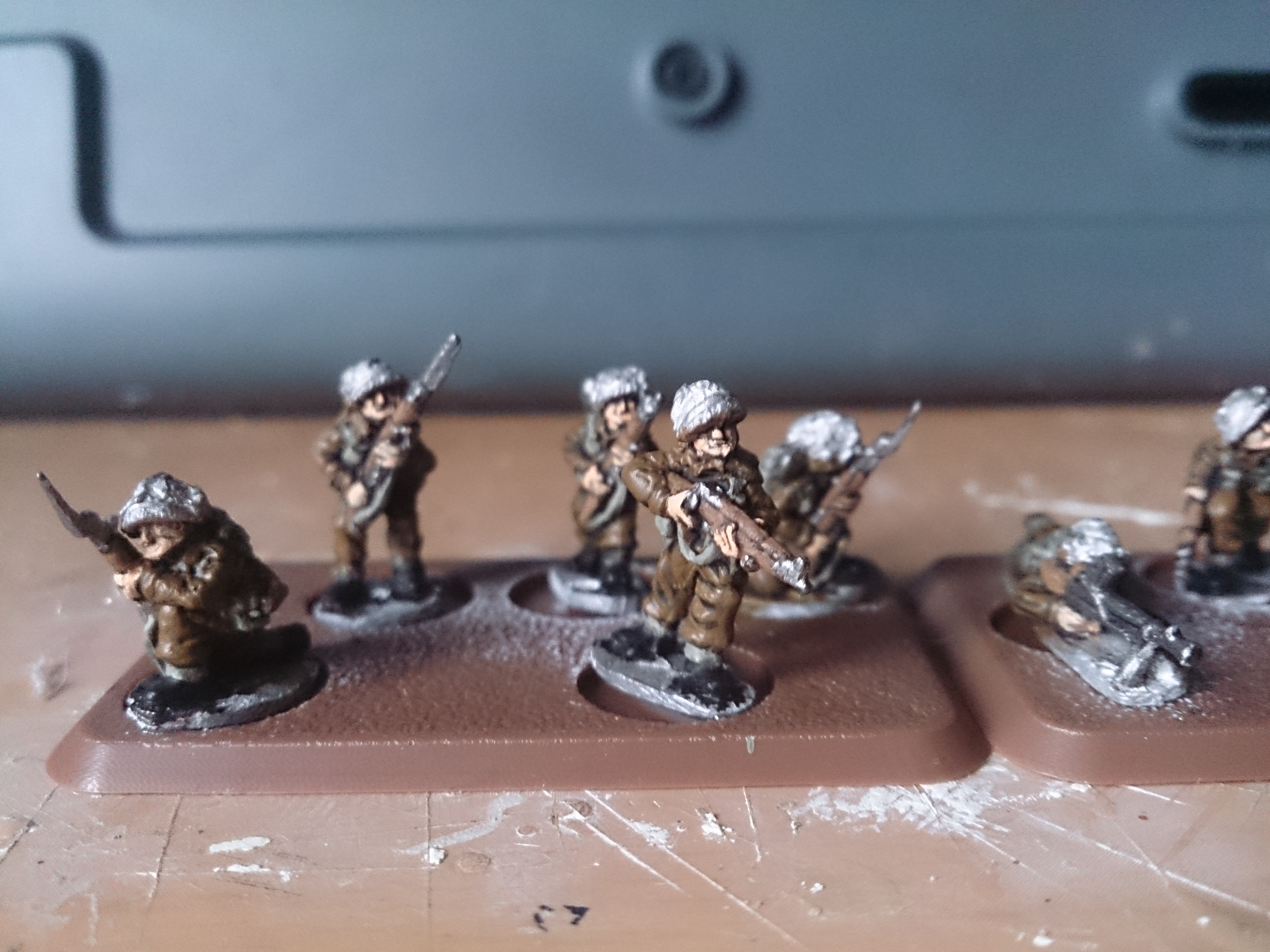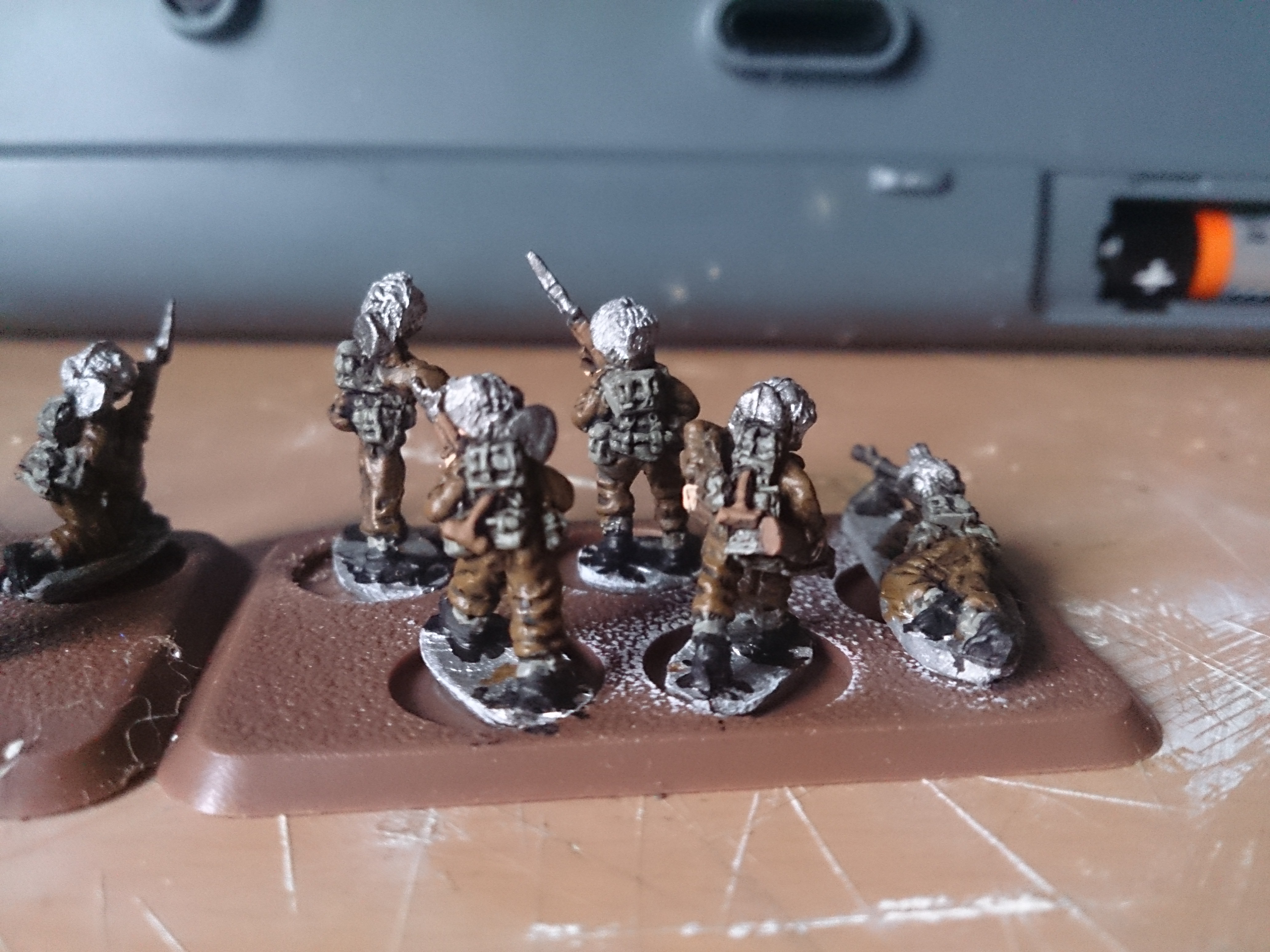 So these guys are almost finished, just need to be based and the helmets painted when my paint arrives. Anything you guys think I've missed or painted the wrong colour? I have a feeling there's details I haven't seen and just painted the same colour as the webbing/battledress.