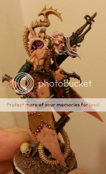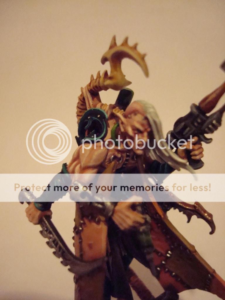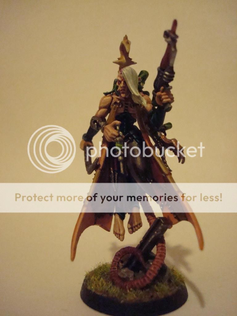 I did try to paint one (the Lhamaen) a while back but really wasn't happy with it, but when the clam pack Haemonculous came out I thought he would be a nice model to try again on.