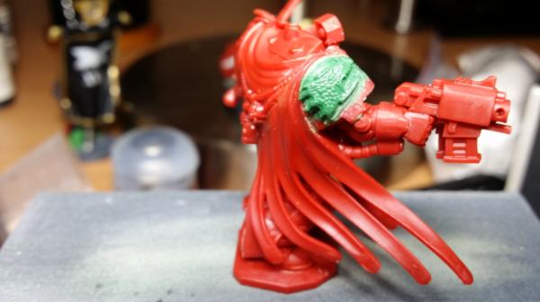 Looks like you took off the drops from the cloak and the iconography from the storm bolter and glove, too. Nice and clean. I guess you just removed the head thing. You can always use that for a bit for a banner somewhere else