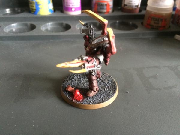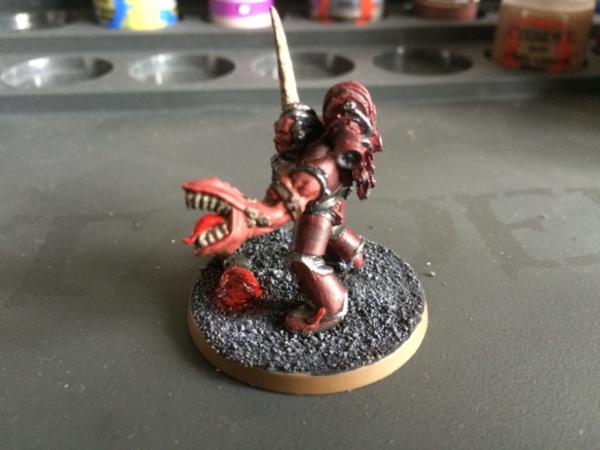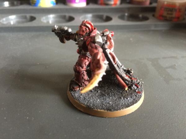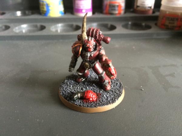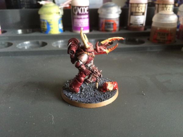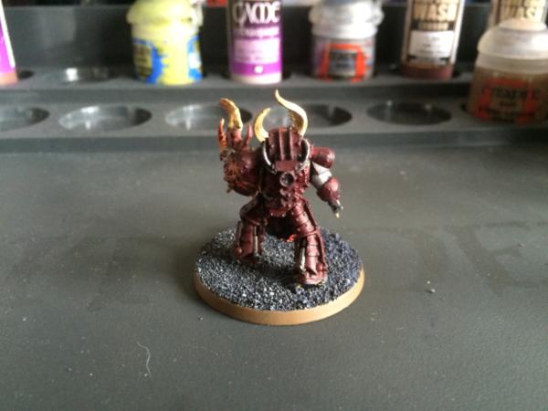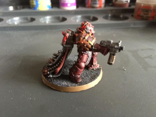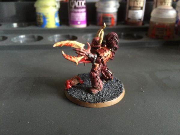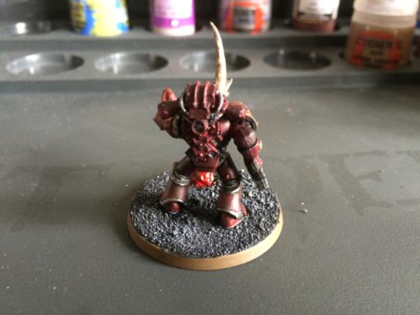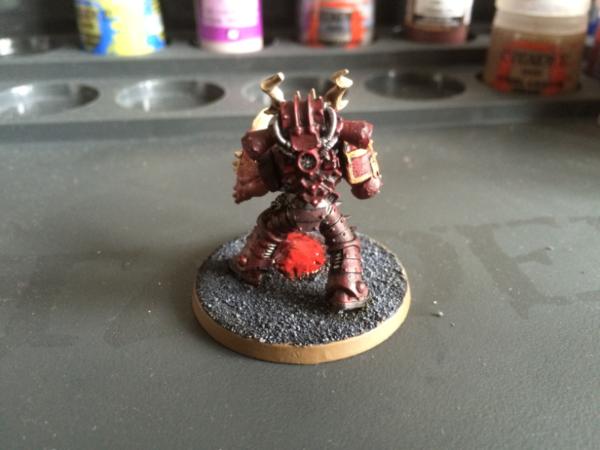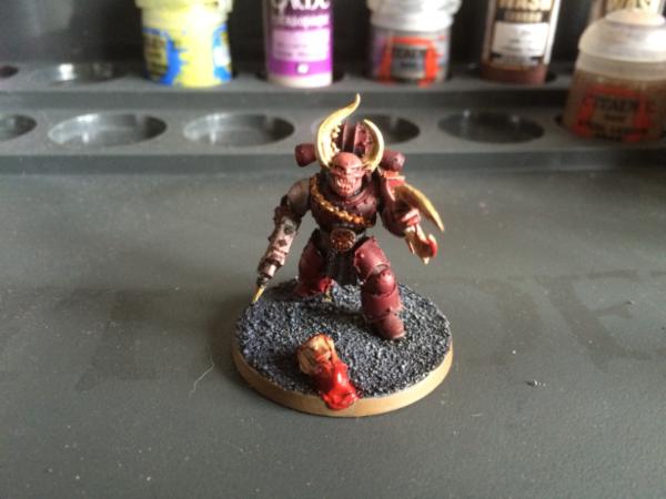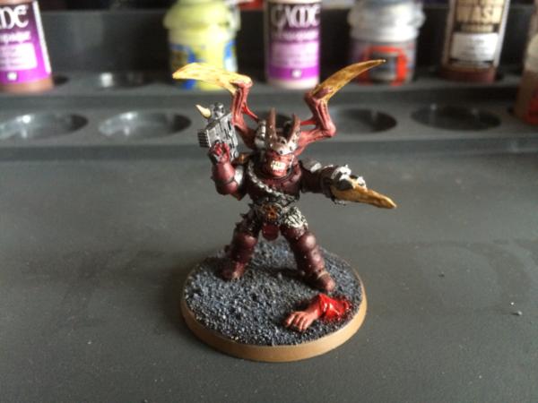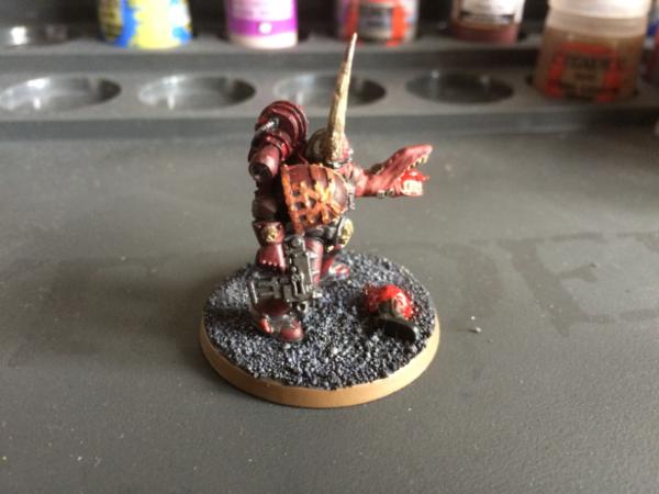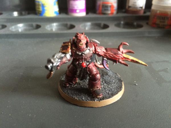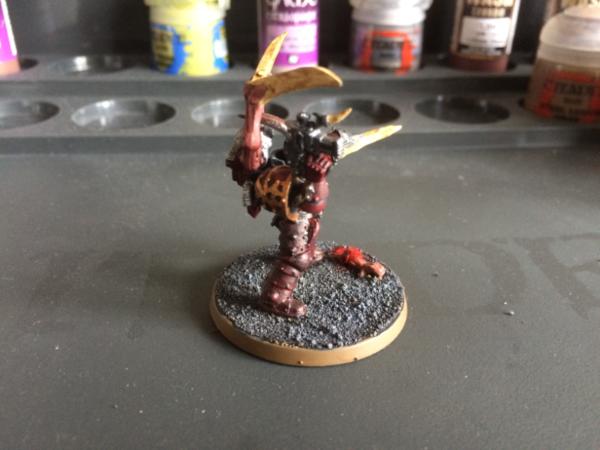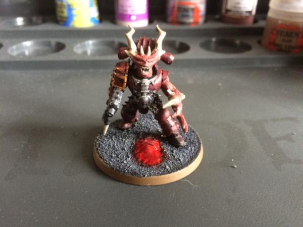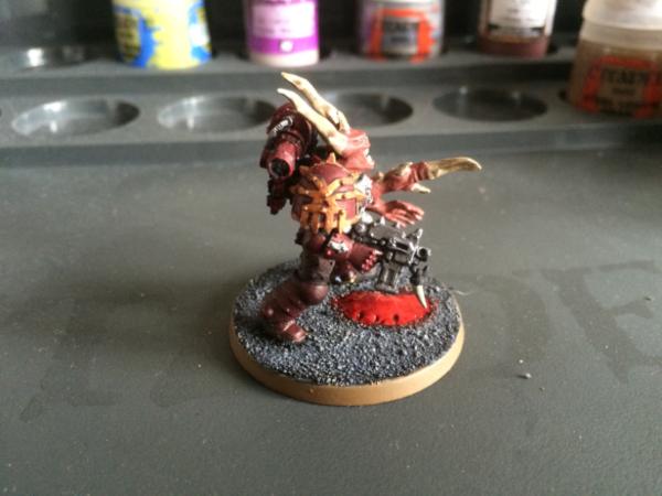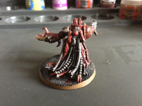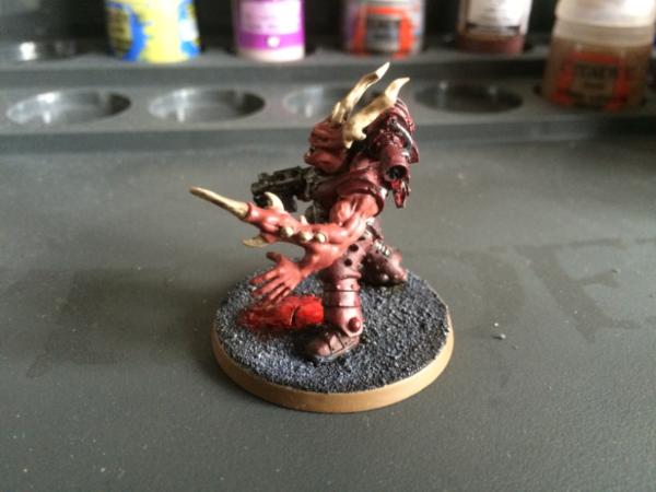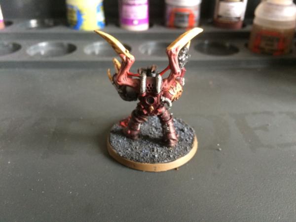 Well actually that is a Warpsmiths back, but did some green stuff work to give the top part a blood filled orb as well as different effects so some that should be metal is actually become living with aspects of muscle and bone growing inside form mutation