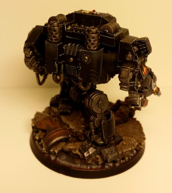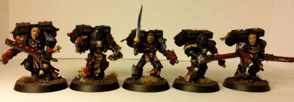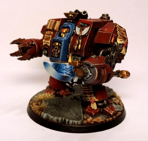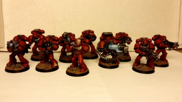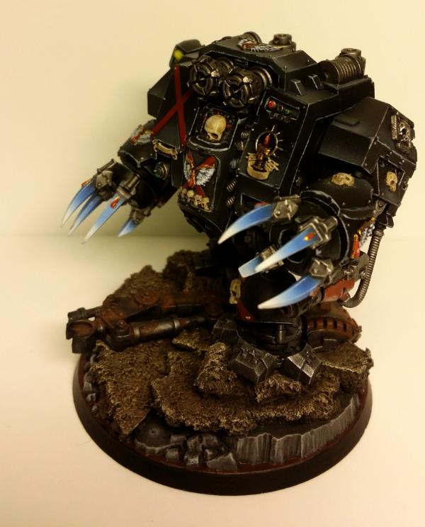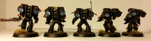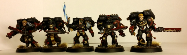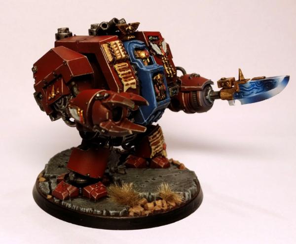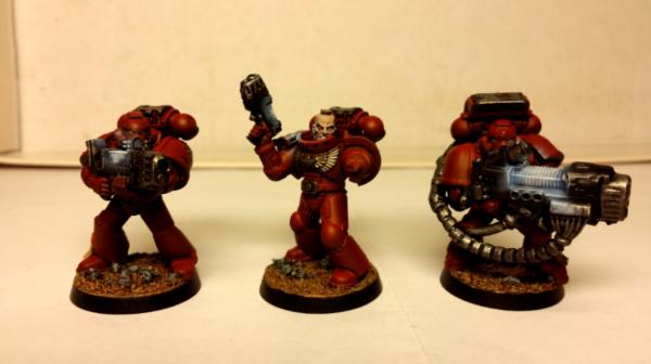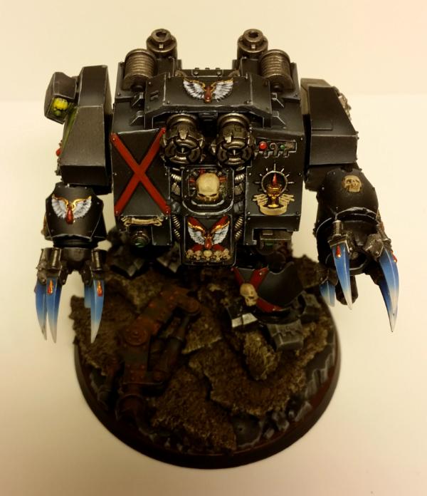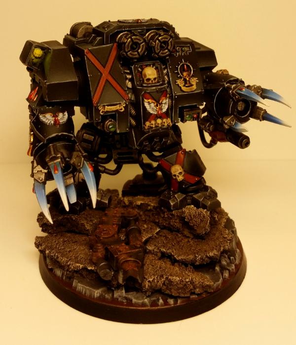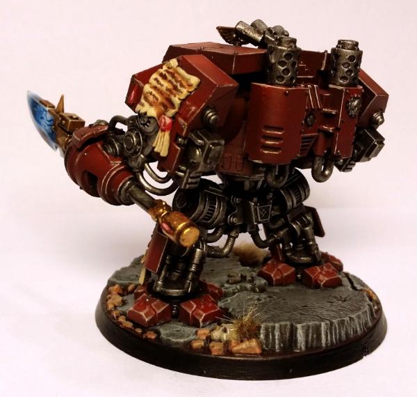 Very nice highlights here on the red. You probably can do a similar touch up on the Tacticals. I really like the Force weapon too--great technique there. The base, too, is excellent and really enhances the model.