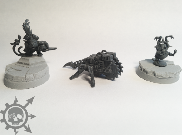 "King-Fiend" Designed to relay commands to- and inspire nearby thralls with the speaker mounted in a commissar's skull. Some say the commissar's brain is still inside, it's messages now twisted by the heretek device it's attached to.