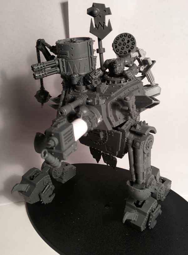 Kitbashed morkanaut. I like the orriginal model but wanted to build something like this for a while and now finally had a reason to do so. Bits from a few dozen different kits went into it but it was worth all the work. Now I just need to fill some gaps and he's ready to rock.