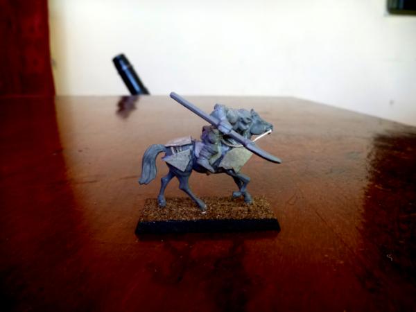 What I found is that if you heat the legs of the em4 orc spearman, you can bend them so that he sits on the horse. Of course, some may find the idea of orcs riding horses instead of wolves/boars sort of unusual, but I don't think it looks too much out of place.