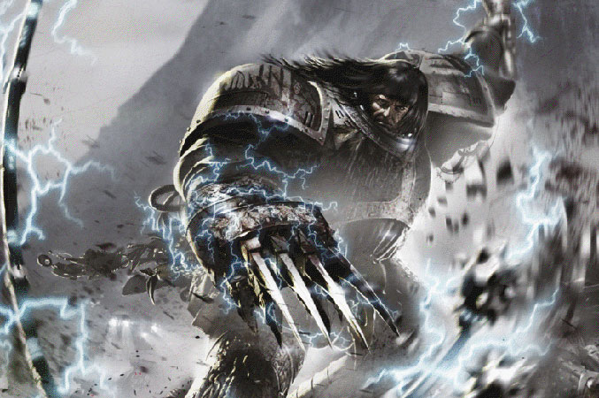 He is a fearsome warrior and a master tactician. He is humble and prefers not to be in the spotlight, but to remain in the shadows. He is definitely quick to make decisions, no matter how difficult and can come off some times as cold-hearted and ruthless, but he does reflect on the decisions he makes. Corax's primary goal is to bring freedom to humanity. He despises all those would enslave and control mankind. He makes use of a lightning whip, lightning claws and a silenced bolter. He is also equipped with a jump pack.