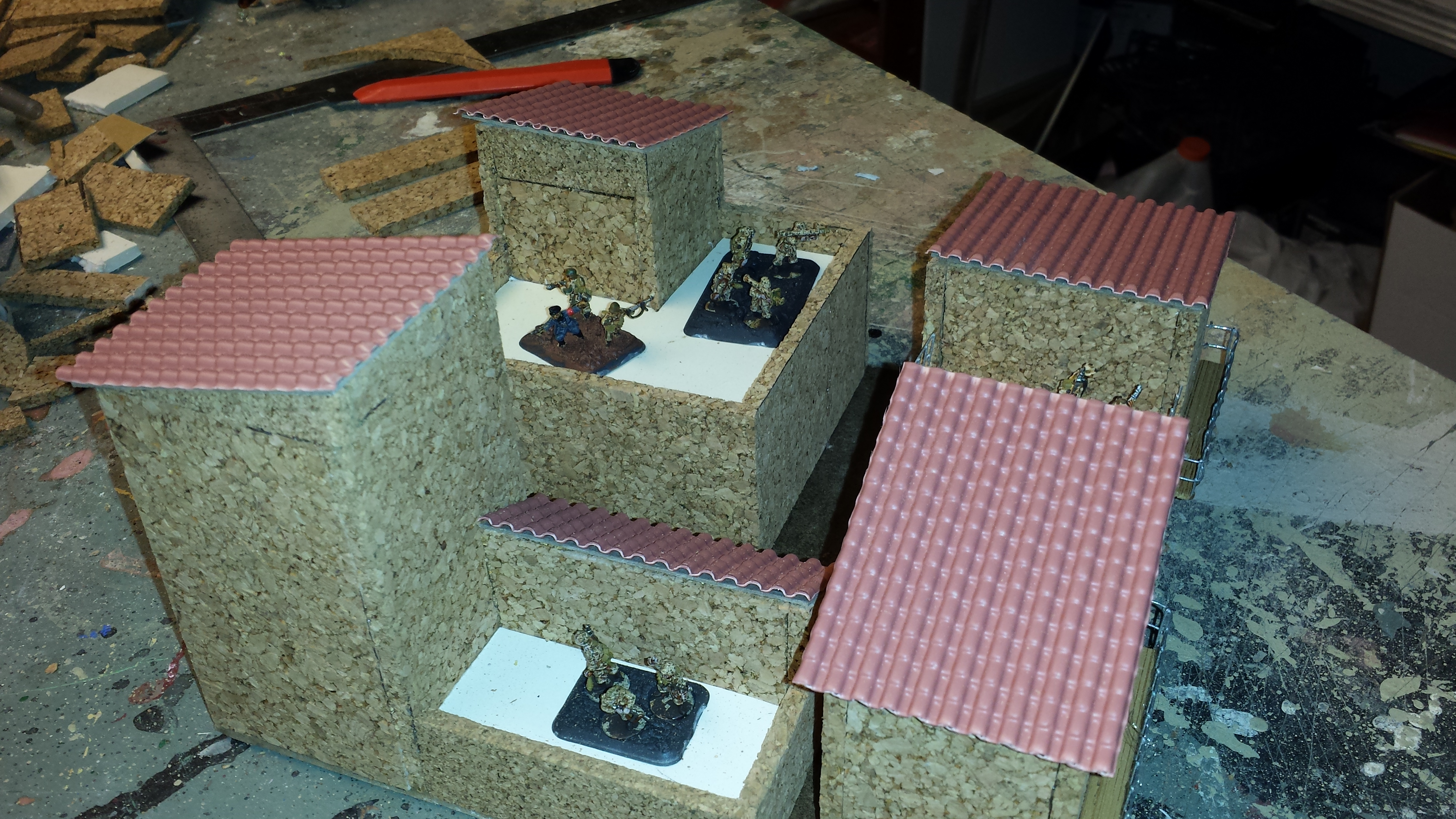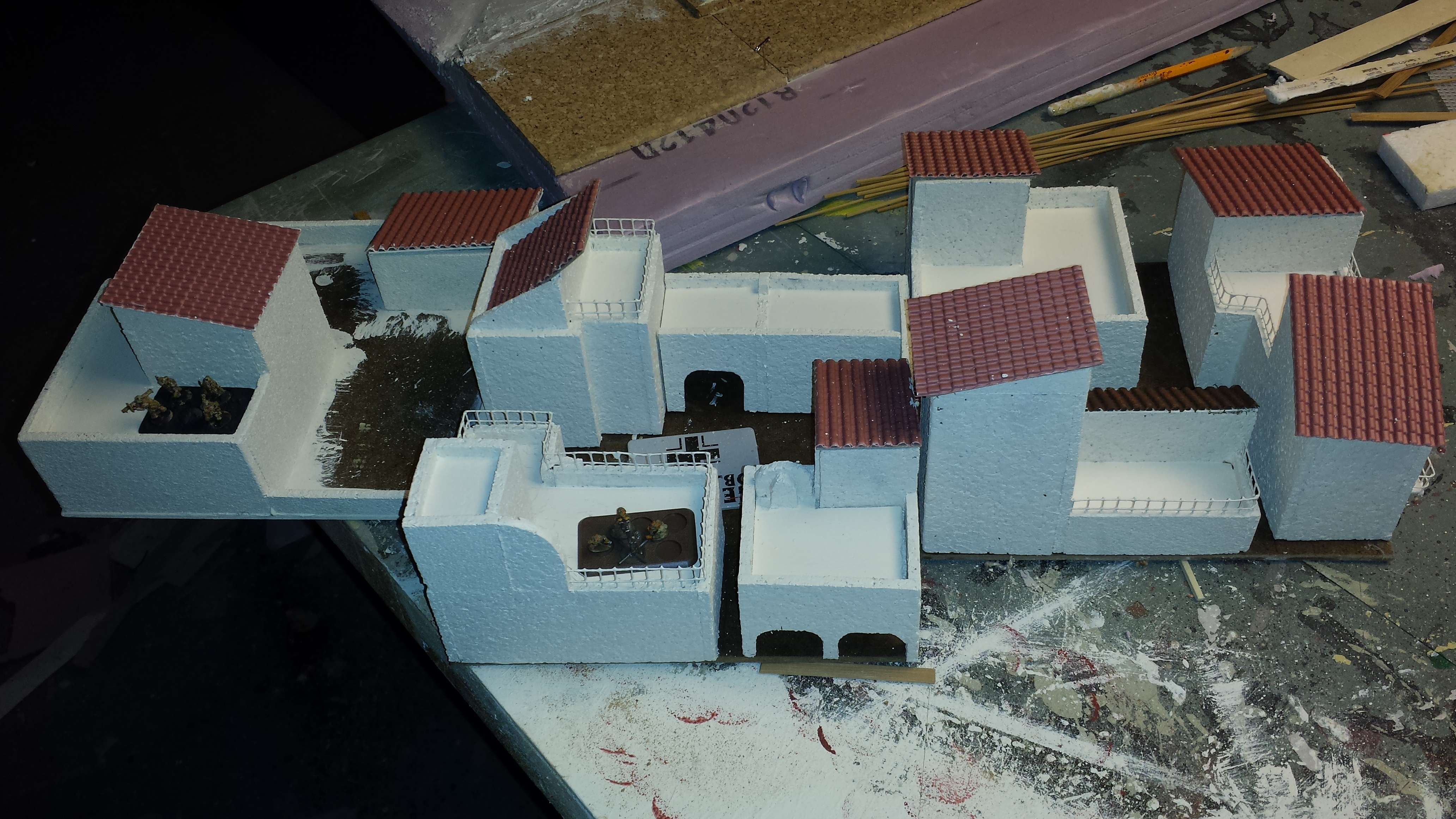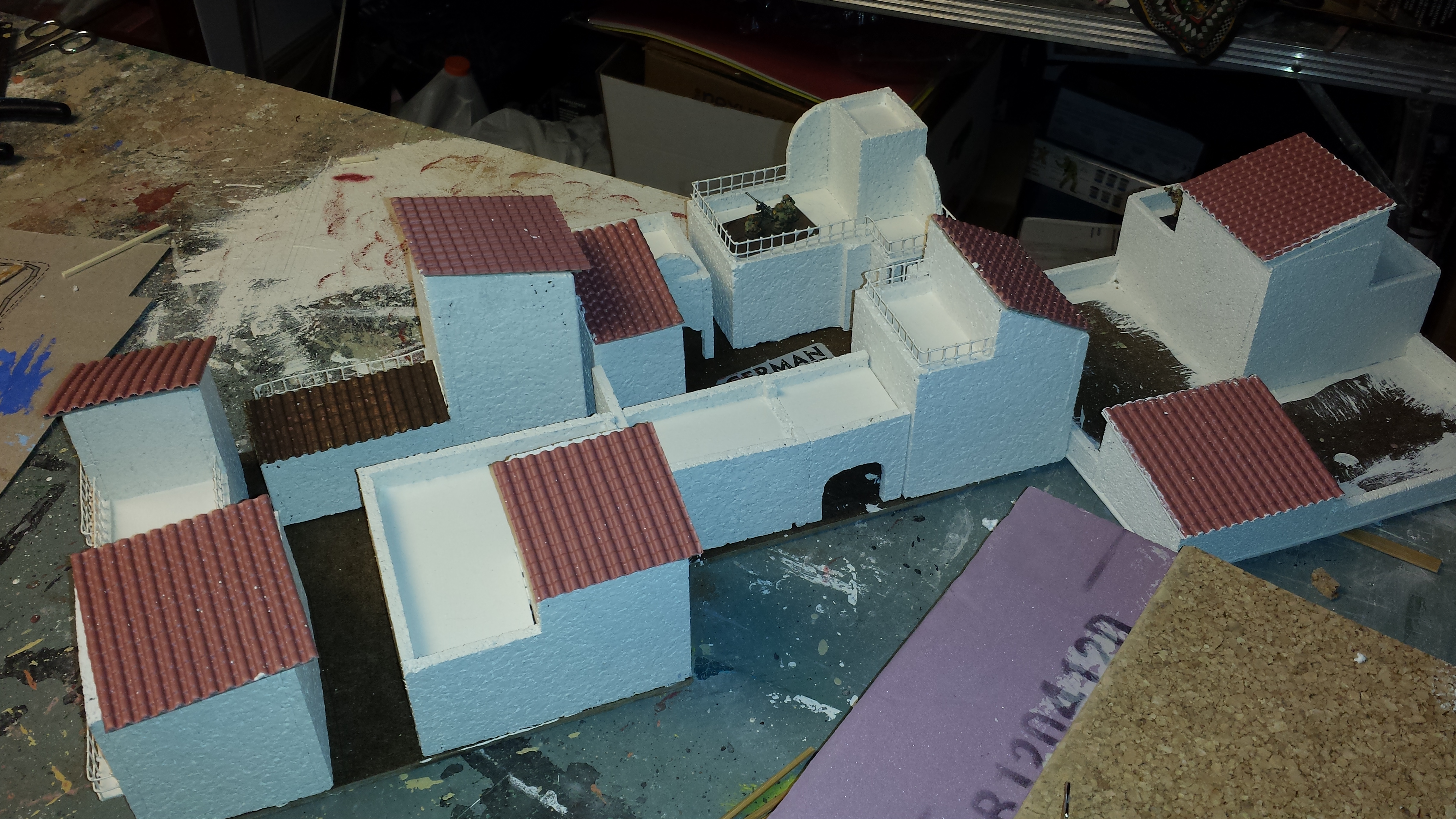 I found them similar to the Tunisia buildings. .I just slanted the rooftop and used "plaststruct" Spanish tiles for the roofs.