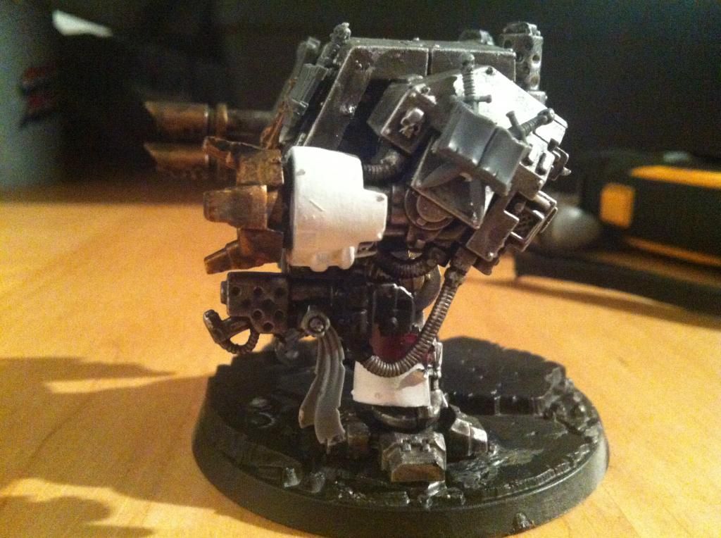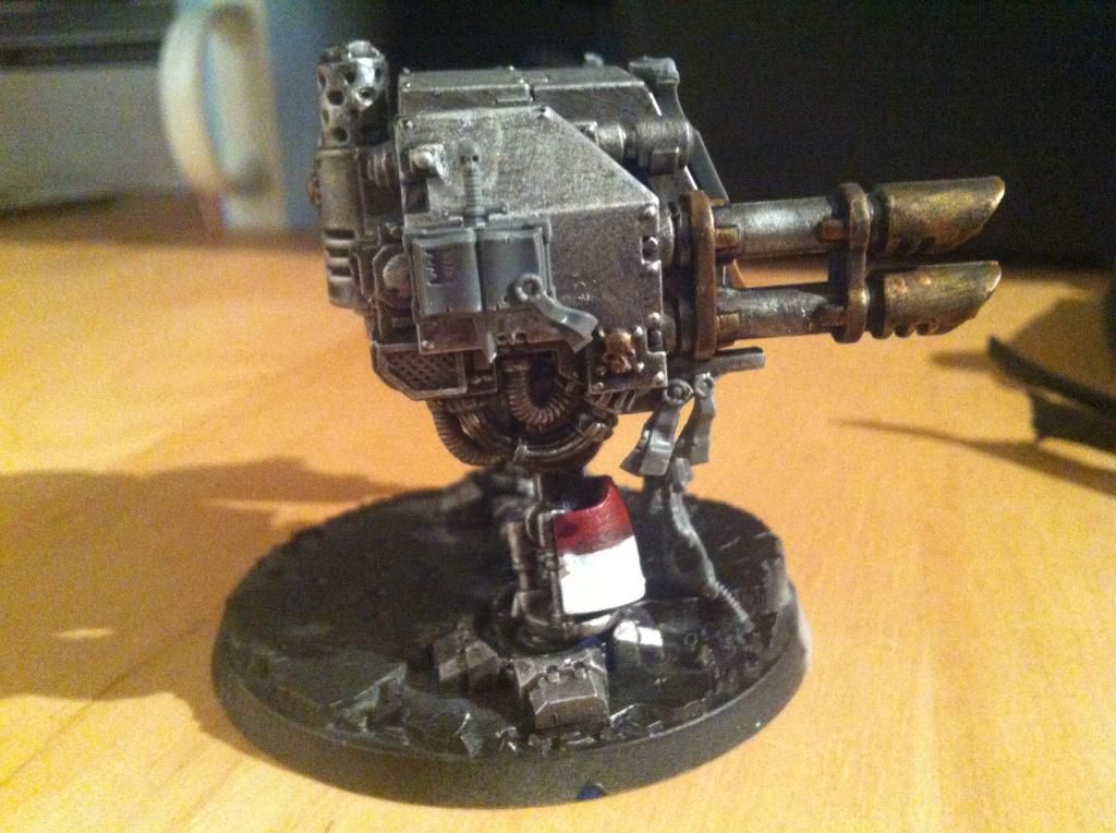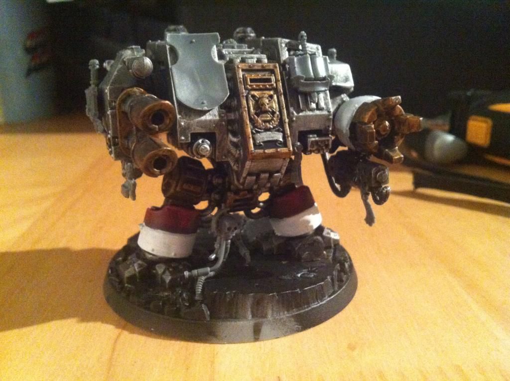 Looks good! Just a tip? Add some icons to him. Maybe take the icons from a box of terminators trim off the bottom pieces and add them to his arms. Maybe the large heraldry shields from a dreadknight on the right side of the body. Looks good just need to flair him out a bit.