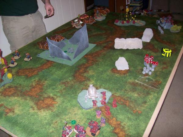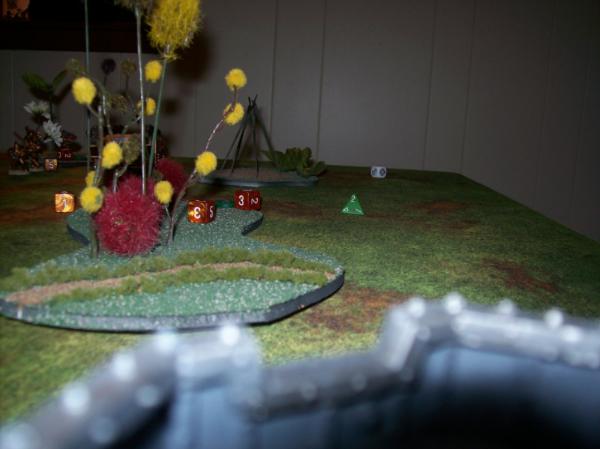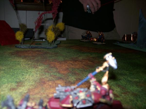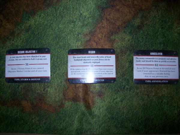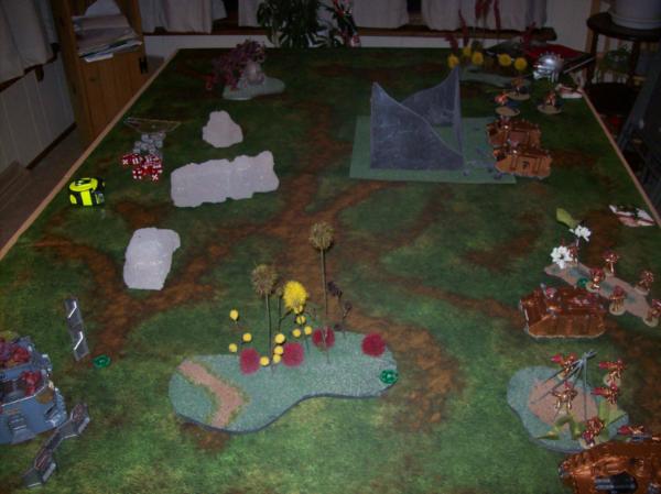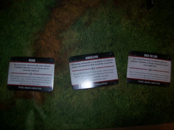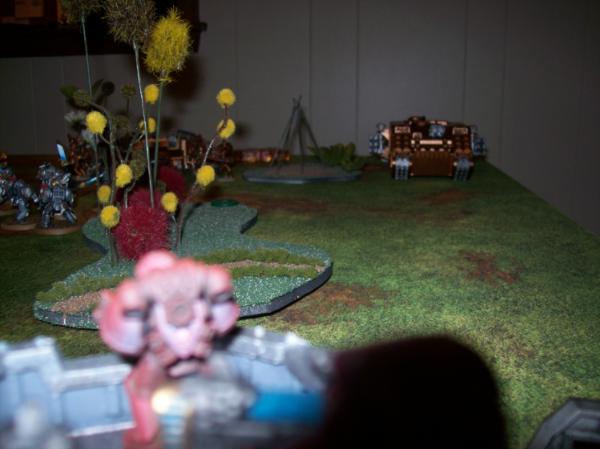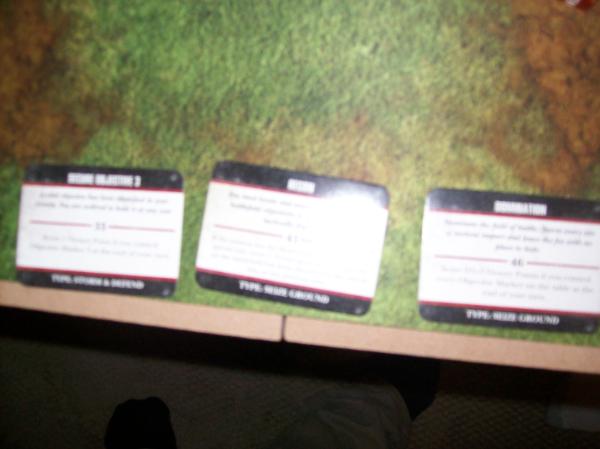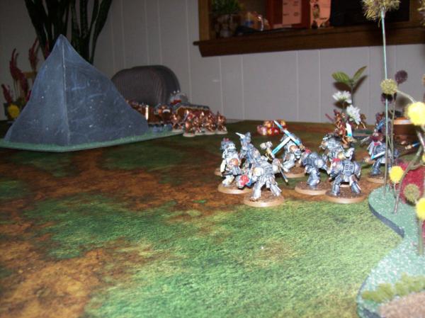Space Wolves first turn Objectives. Hard to read with the crummy pic, but he needed an objective in the Ruins at midfield.