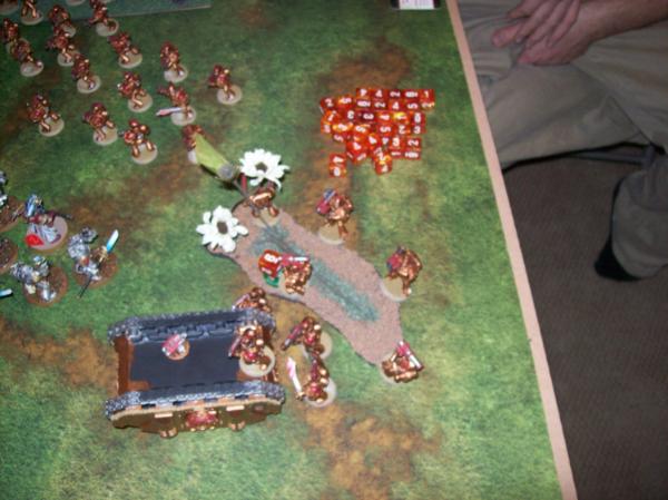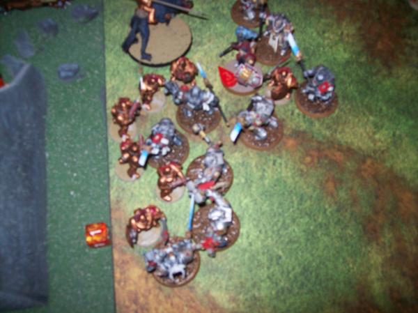I multi-charge the two Grey Hunters and would have decimated them much worse if not for his Battle Leaders tanking quite a few wounds with their Stormshields. Unfortunately for them, they actually pass morale! Locked in combat. I score one more Maelstrom point and am up 3-1 at this point.