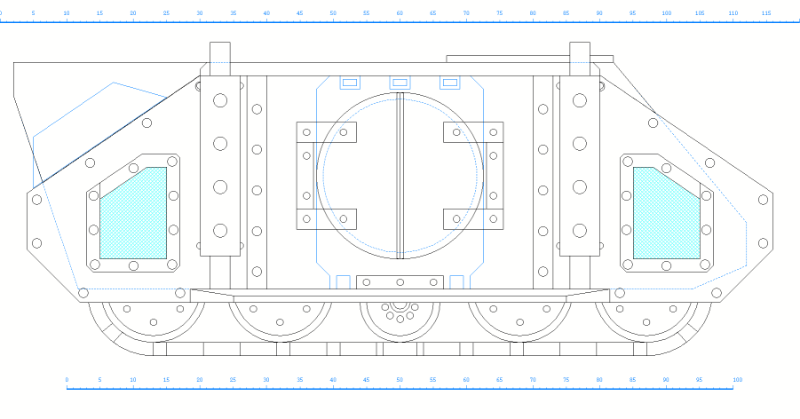 This is the pattern that I designed. The doorway is designed to use a current rhino ramp door, or a slightly larger version of a round hatch.
