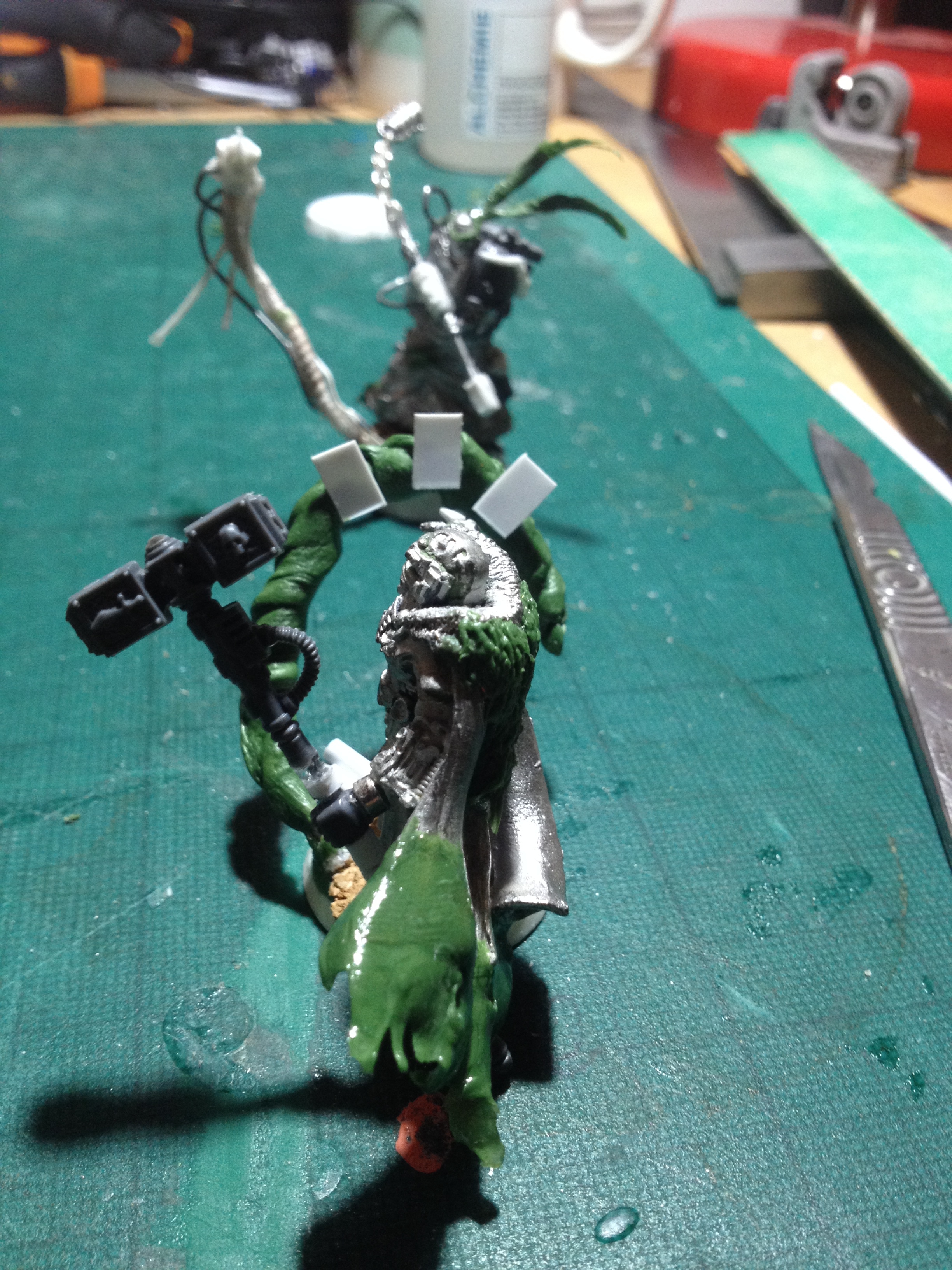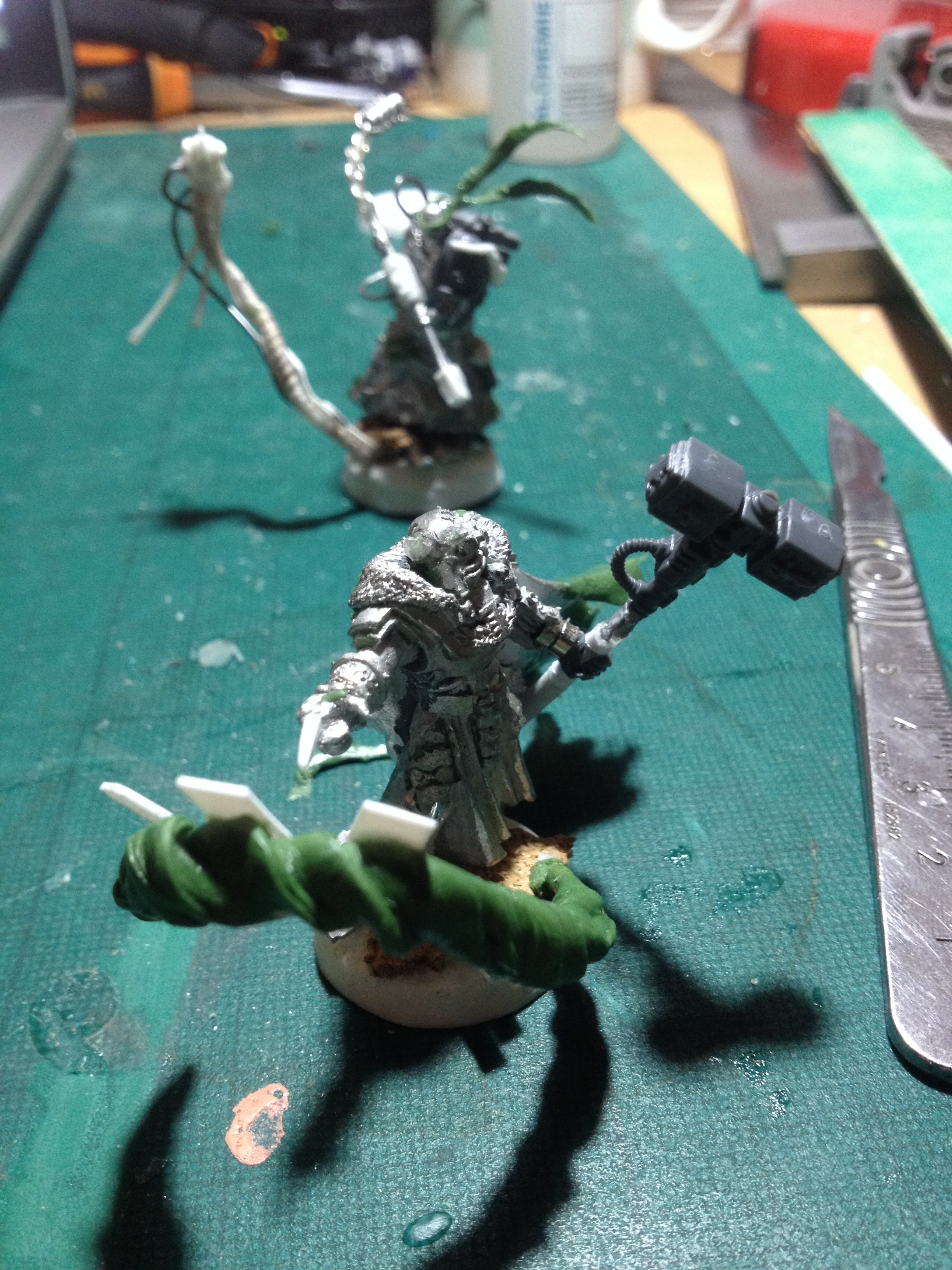 Ongoing Retinue im working on. First two models are the flagellant and my inquisitor using the emperors tarot . Thinking of giving the inquisitor loki style horns? What do you guys think?