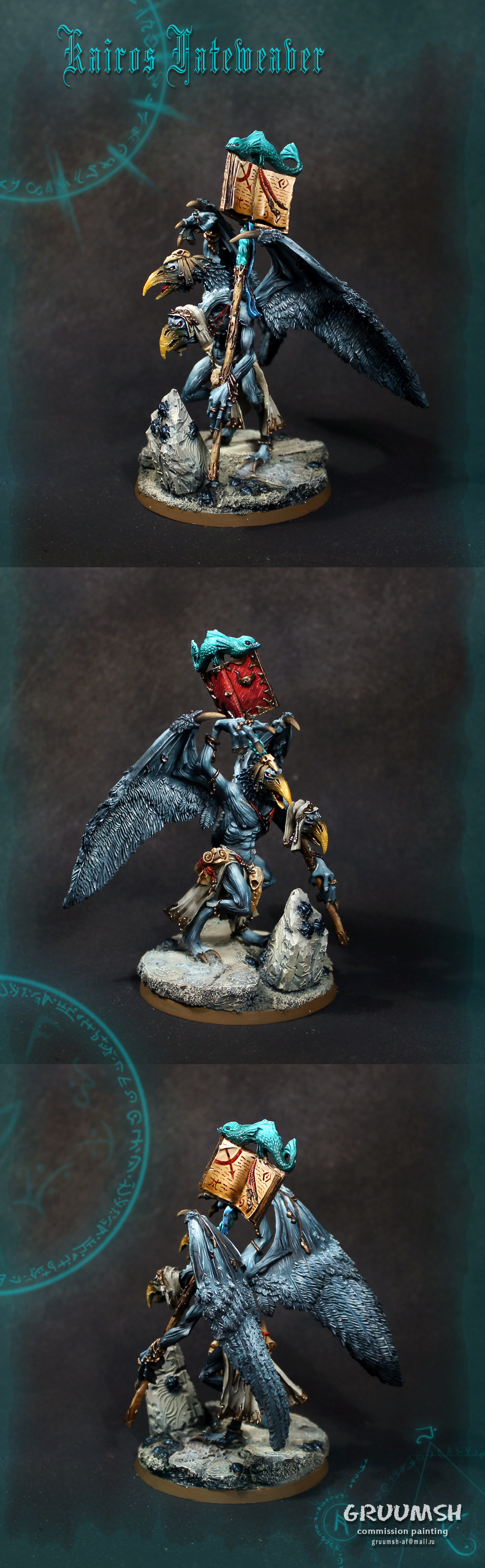 Really, really nice model you've got here. I absolutely love the color transitions between the shadows and highlights and the beak coloration contrasts nicely with the blue skin. The basing it very fitting and also gives the model a nice contrast. Great job!