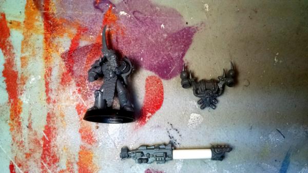 My Grey Knights have been set aside. I think I just lost interest in the color scheme, or they were wrapped up in sour memories, not sure. After a long time of debate, trying to figure out if I wanted to start another army, I found that chaos had been whispering in my ears all along and so I did what came naturally. I gave in.