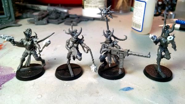I decided to give my cultists a unique look and I happen to have a ton of Dark Eldar lying around. At the moment they are on temporary bases for painting.