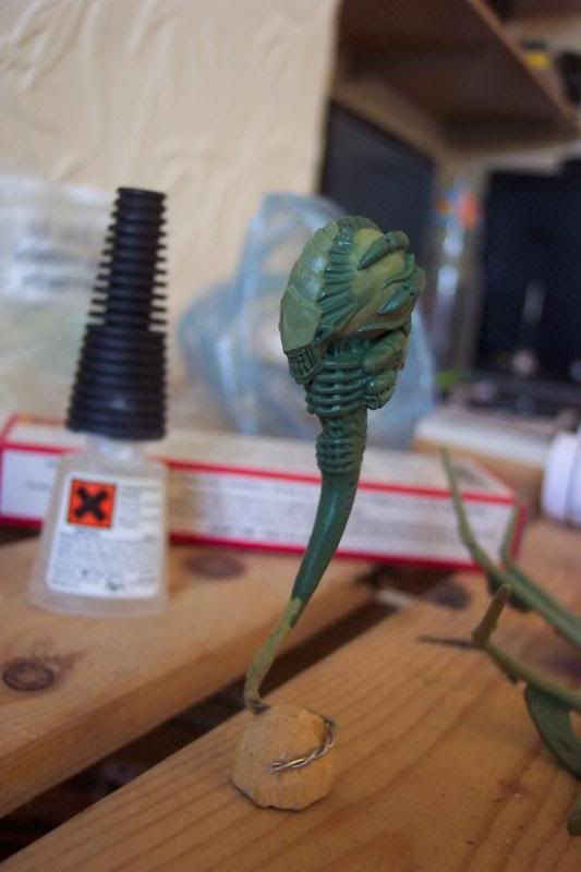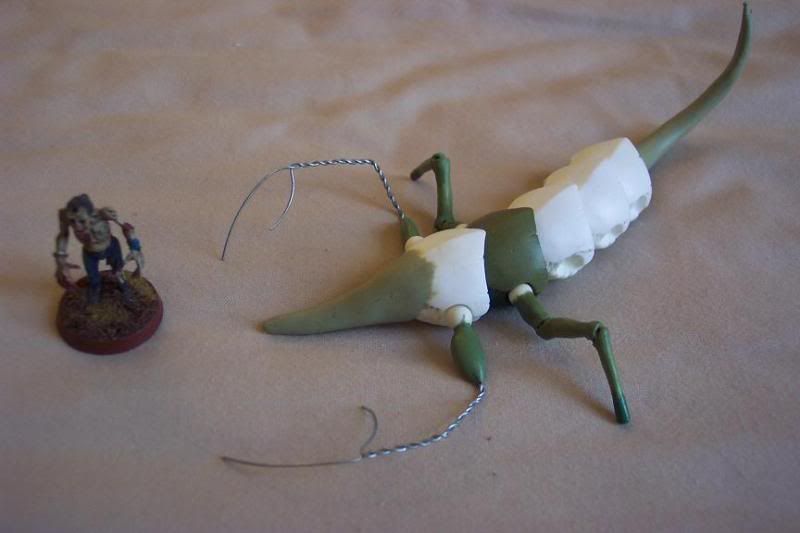He is big, about the size of my demon lord kit. Here is a little work, not much time. Head far from done yet, head crest will have lots of offshoot spines on side and be very thorn like. Tubes on face, etc. 1st of 3 heads. I'm making him bigger for a queen version which will be slightly smaller. She will be the next step up from the stalkers I'm updateing so it will go: 1 stalkers and feeders, queens, and this fella, then the alien wyrm and other big buggers. I'm going to do a whole army of them and the stalkers will be the first unit.