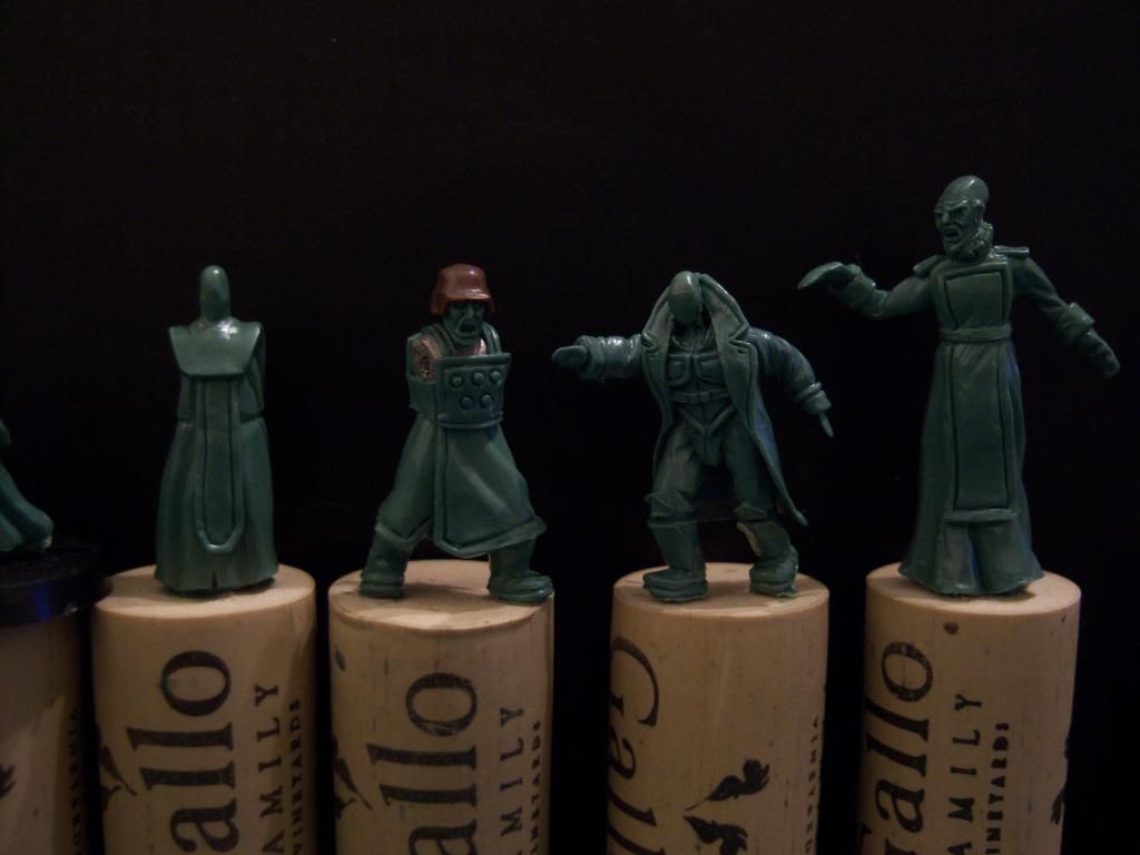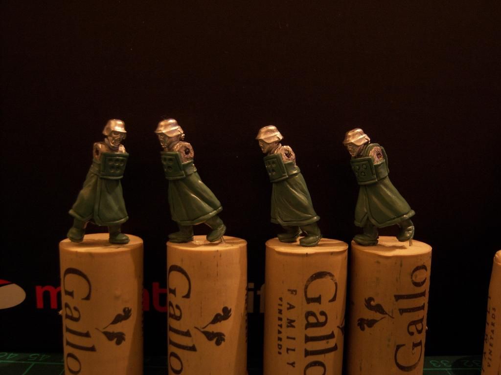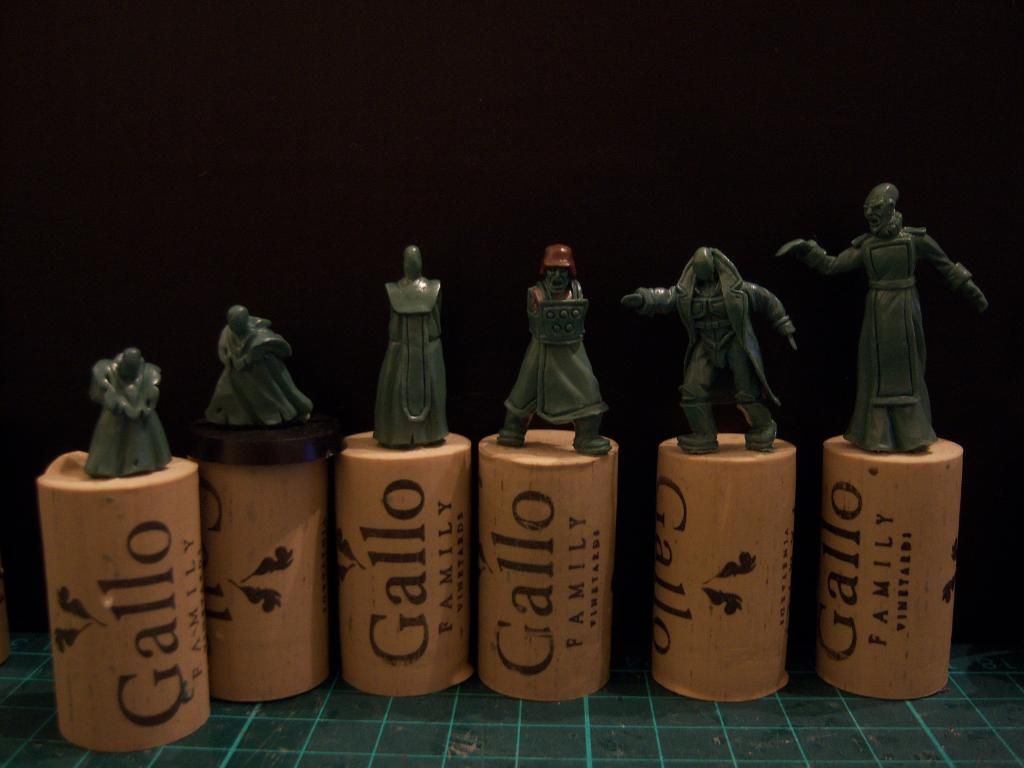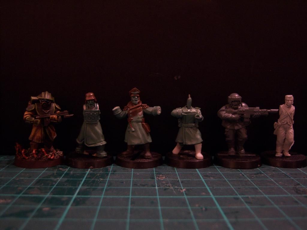 From the left, two drones who are going to have gas masks and piping (basically 'dark' version of my other little drones), next the Black Alchemist/Alkemist they will accompany, a BP trooper, Vampire commander and the Imagifier.