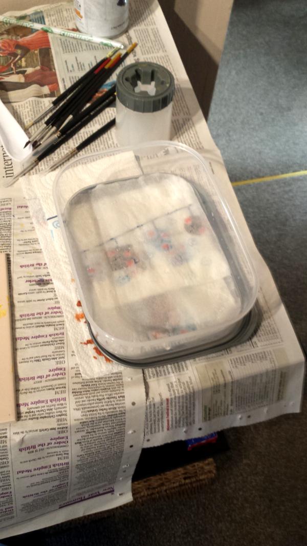 OK so i have been using the wet pallet today. And, Thanks a lot guys it really does help enormously!!!! Not to mention the paint I'm not wasting But as I am doing this system of "layers" (I assume everyone waters down their paint to do this?) I find that the paint "pools" on certain flat areas and when I try and spread it more ti get an even coat (or dry the brush slightly to do so)I get tiny bubbles and also it behaves more like a wash then paint... Is this normal? Would the flow extender thing help ? P.S. If anyone is reading this and trying out the wet pallet I suggest using a couple layers of paper towels to give it a nice bedding and be very generous with the water. Also you guys are great with ya'll tips.  EXALTS FOR ALL !!!!
