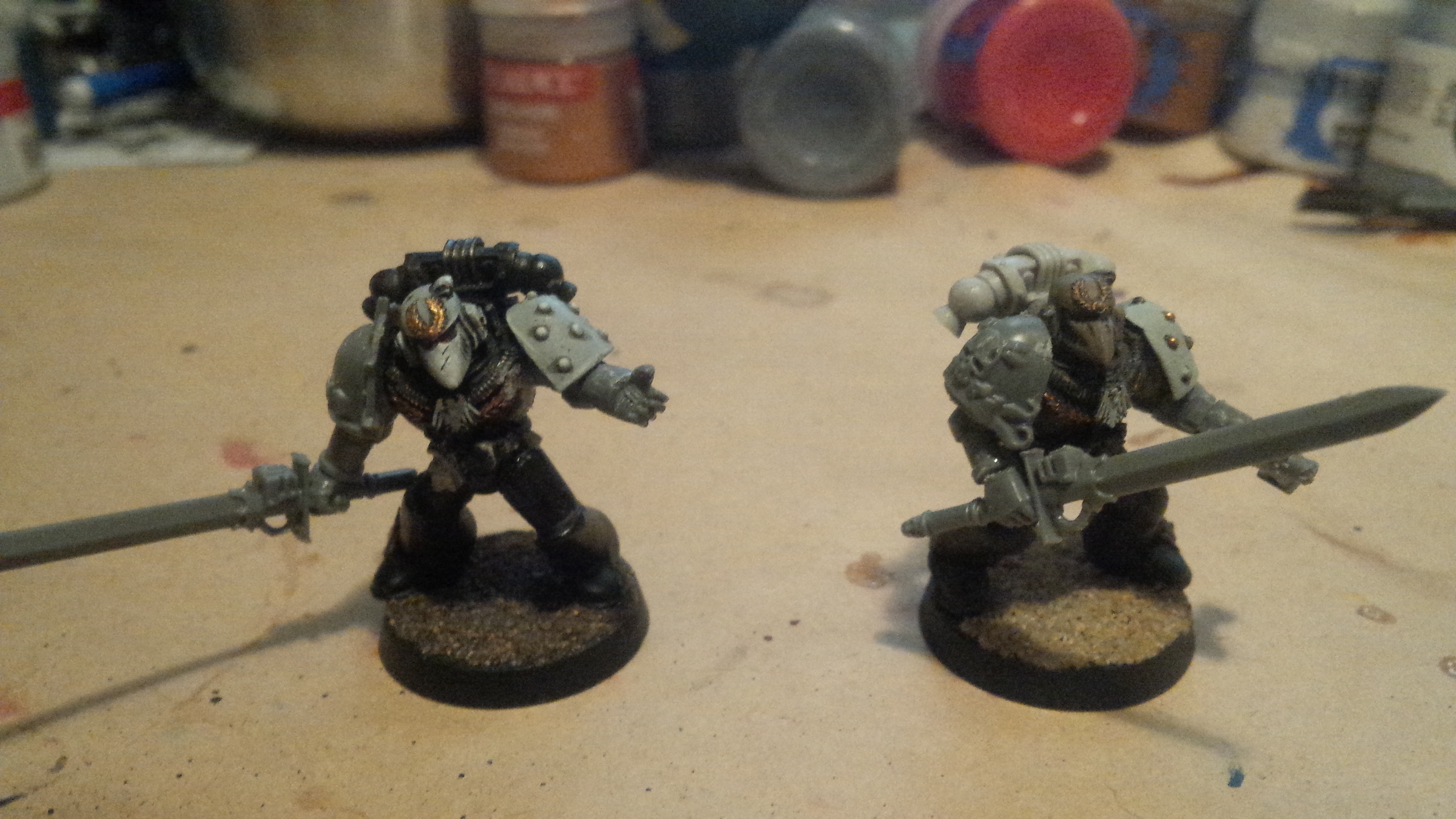 I started making some models I could use as a normal Honour Guard squad or a 30k Command Squad. They're mostly half painted models I wasn't using, that I just tore the arms and backpacks off, but because of that they look very similar to my basic tactical model (all use the upgrade kits from forgeworld).