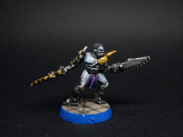 Here's one Pit Fighter, with a chainsaw from a 2ed ork kit and original shears. Hazard markings are done with a micron pen.