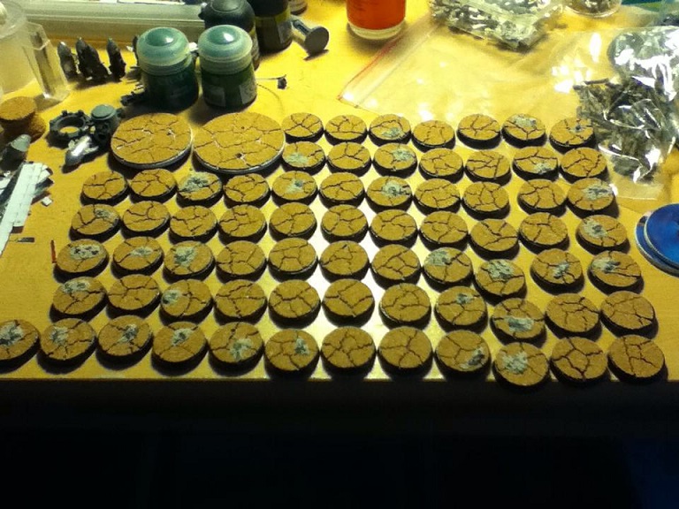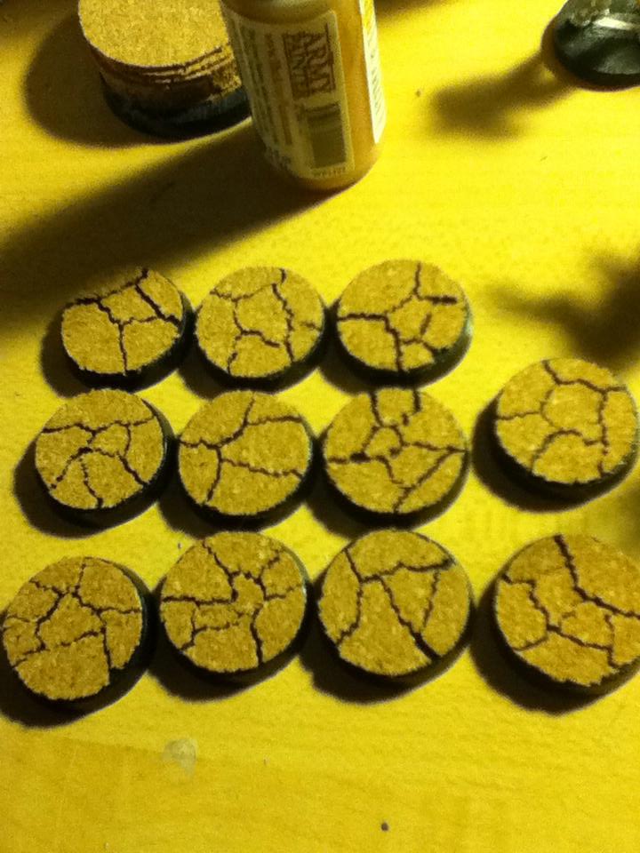 Base theme-wise I'm going for a desert look using 1-2mm thick sheets of cork torn up to look like cracked earth...like a salt flat...you'll see it in the pictures...I should try and paint one to see how it ends up....or I might just scrap it all and get that cracking earth paint that GW makes and do them up that way...probably get you guys to choose for me lol, anyways read away and I'll start posting pics tomorrow