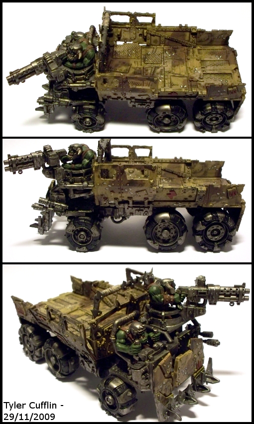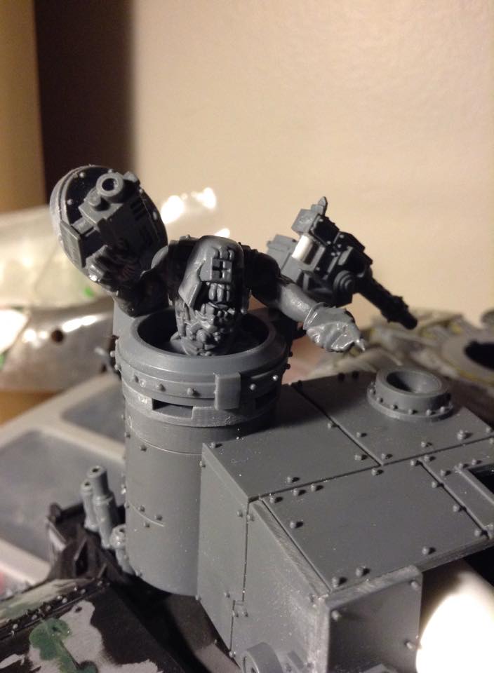 So my friend donated me a turret which I humblely accepted...I still need the para scope and the stikkbomb chukkas for the sides, I magnetized, the top turret...couldn't find the trigger handle for the pintle machinegun so I stuck a thin piece of plastic card rod there...I want to give the ork on the top one of those screaming faces that's missing an eye...I just gotta dig him up...anyways hered a pic...do you think the gun barrel is too long? I kinda like it