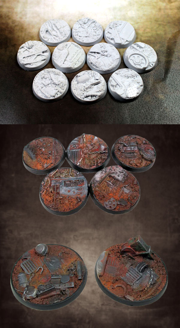Alright so I decided to order resin bases from tiny worlds, since they made resin bases in 32mm and 50mm so I ordered 2 sets of 32mm a set of 40mm and a set of 50mm of urban rubble bases...here is the pics of what I ordered, boyz will be mounted on 32s nobs will be mounted on 40s and warbosses and whatnot will be mounted on 50s