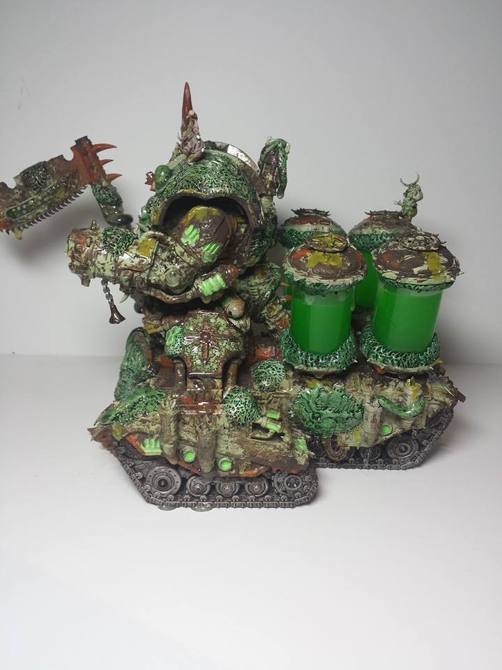 My only critiques are that you could use some more variations of green blended in with the existing ones. They're very monochrome. Also, those tracks are PRISTINE. I thought this was Nurgle? Give us some rust and corrosion!