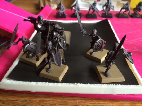 So after nearly a month of doing small bits of painting between family related things, made some head way with my Vampire Count army as the skeletons are 2 colours from becoming fully base coated for their wash down.