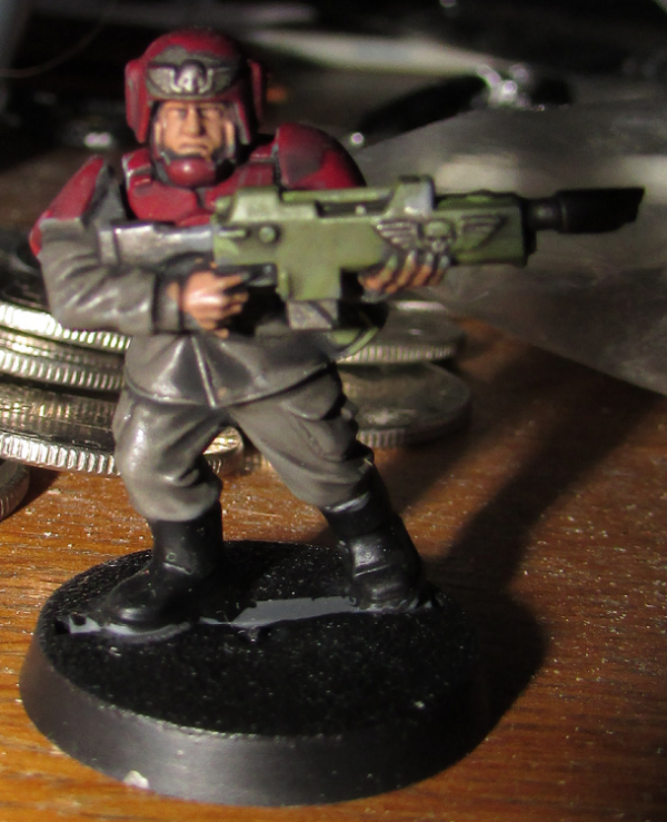 Not bad at all. a few tips would be slow down a bit when you paint, and work from the bottom up, like cloth, armor, lasgun, then hands. it helps prevent issues like green fingers and the like